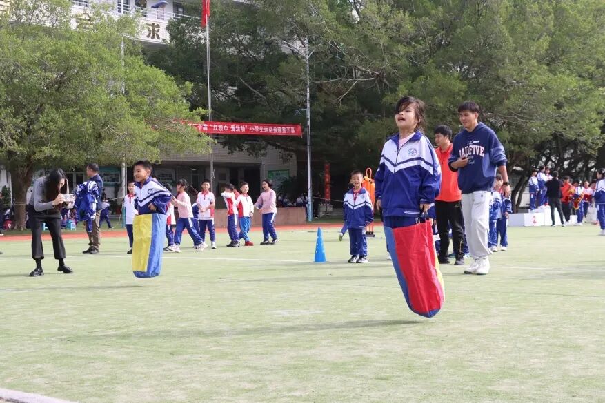 在紧张激烈的竞技之余,“袋鼠跳”“趣味接力”等集体项目更是笑声不断。同学们在合作中增进默契,在游戏中体验运动乐趣。尤其值得一提的是“教职工团体赛”,老师们一改平日的严肃,在赛场上尽情投入、默契配合,为运动会增添了许多轻松与欢快的色彩。