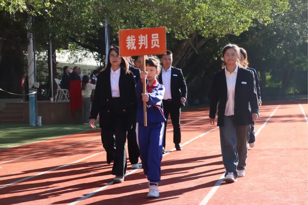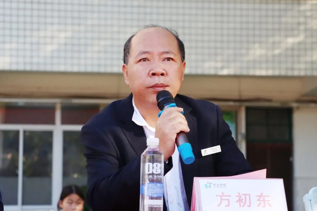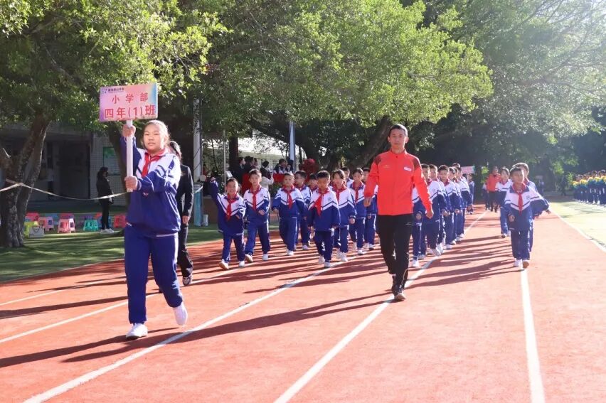 小学部常务副校长方初东致开幕辞。他勉励全体运动员以饱满的斗志和坚韧的毅力投入比赛,展现新时代学子心怀梦想、勇于担当的青春风采;希望裁判员和工作人员秉持专业、公正的原则,确保赛事规范进行;同时鼓励同学们积极参与体育活动,培养健康生活习惯,争创文明班集体。