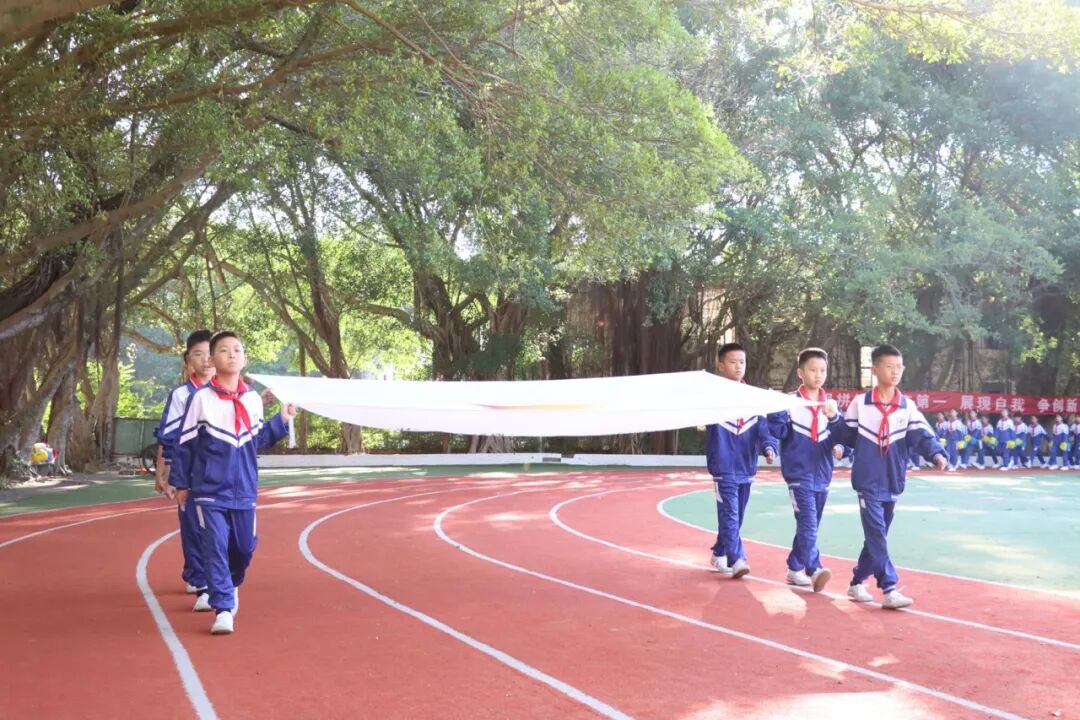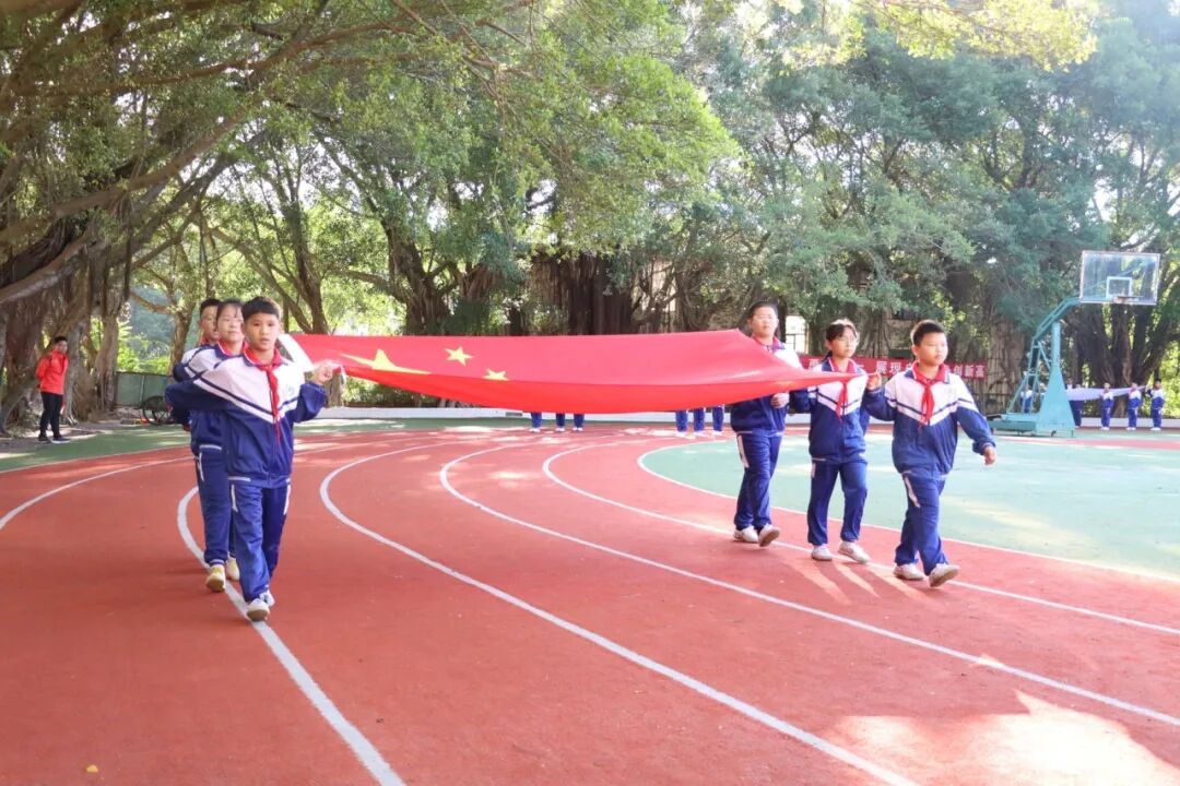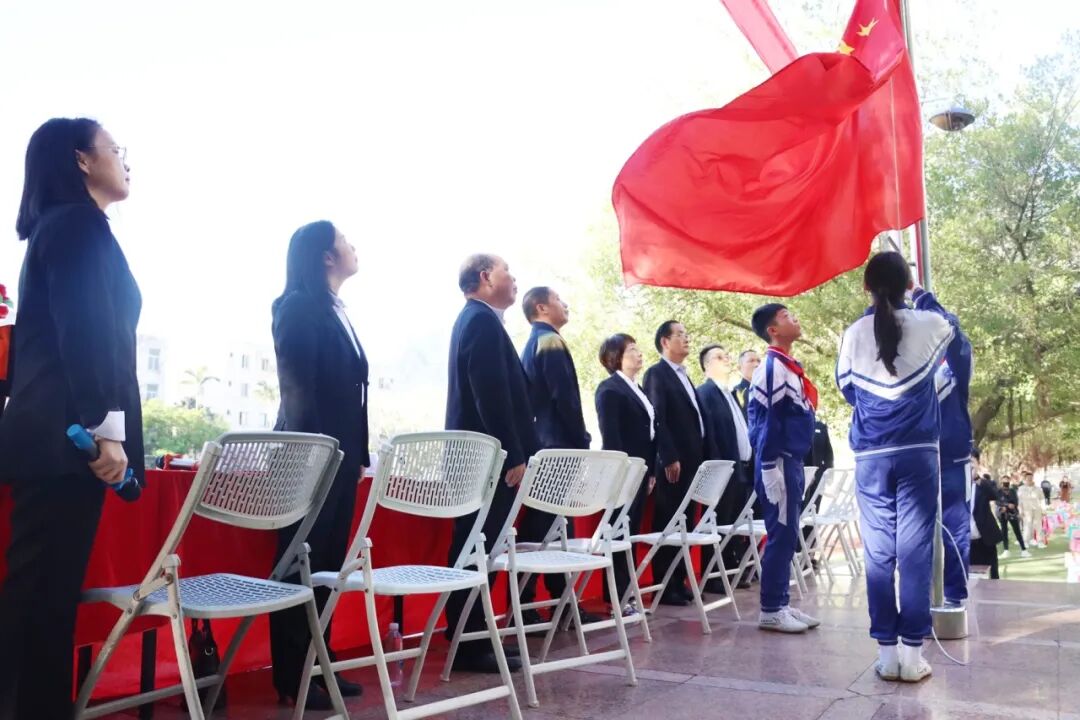 开幕式在庄严的升旗仪式中正式拉开序幕。雄壮的《义勇军进行曲》奏响,五星红旗冉冉升起,全体师生肃立注目、齐声高歌,激昂的旋律回荡在校园的每个角落,为这场体育盛会奠定了庄重而神圣的基调。