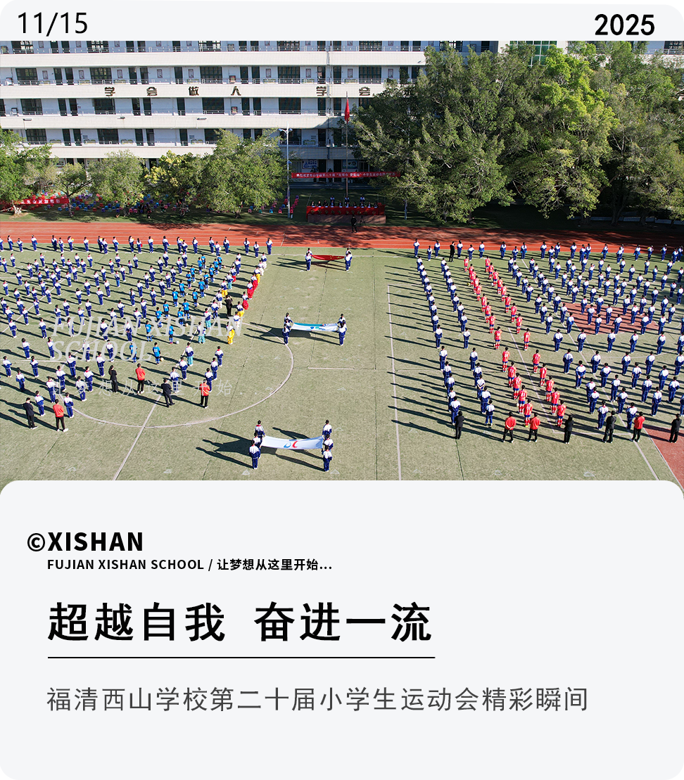 童真活力绽放,少年逐梦赛场。2025年11月14日至15日,福清西山学校小学部校园内彩旗飘扬、掌声如潮,全体师生齐聚运动场,共同迎来第二十届小学生运动会的盛大举行。阳光洒满整洁的跑道,欢声笑语与激昂的乐曲交织,汇成一幅生机勃勃的校园画卷。