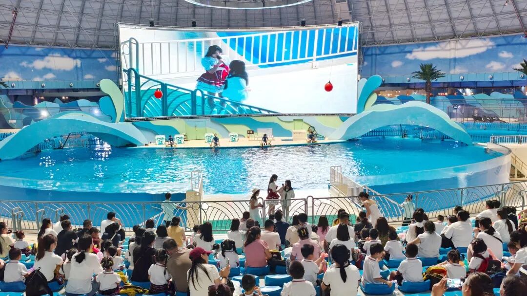 “快看!是美人鱼!”在美人鱼剧场,演员们优雅的身姿在水中演绎着浪漫故事,将童话书中的想象变为现实;海底“明星”剧场更是热闹非凡,海豚接连跃出水面,划出优美弧线,仿佛在欢迎小客人的到来;海狮则化身“音乐家”,用独特的叫声奏响欢乐节拍,赢得孩子们阵阵掌声;梦幻剧场中,蝴蝶精灵引领的高空表演与魔术交织,带来一个又一个惊喜。