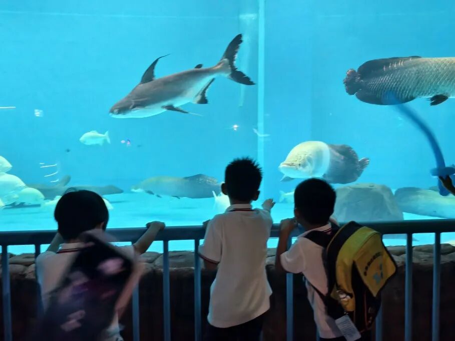 •在海底隧道,五彩斑斓的鱼群从头顶悠然游过,让人仿佛置身真实海底,孩子们情不自禁地伸手“触摸”这些灵动的海洋朋友;
