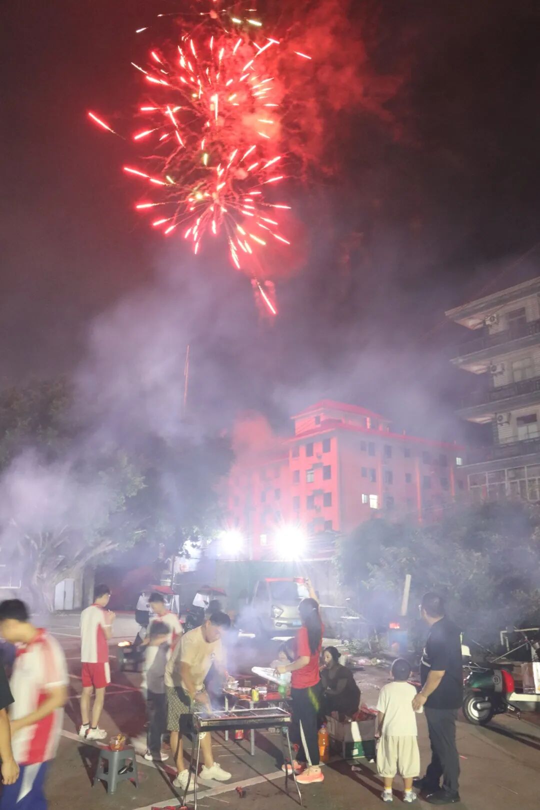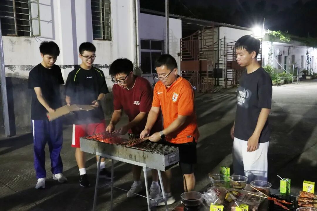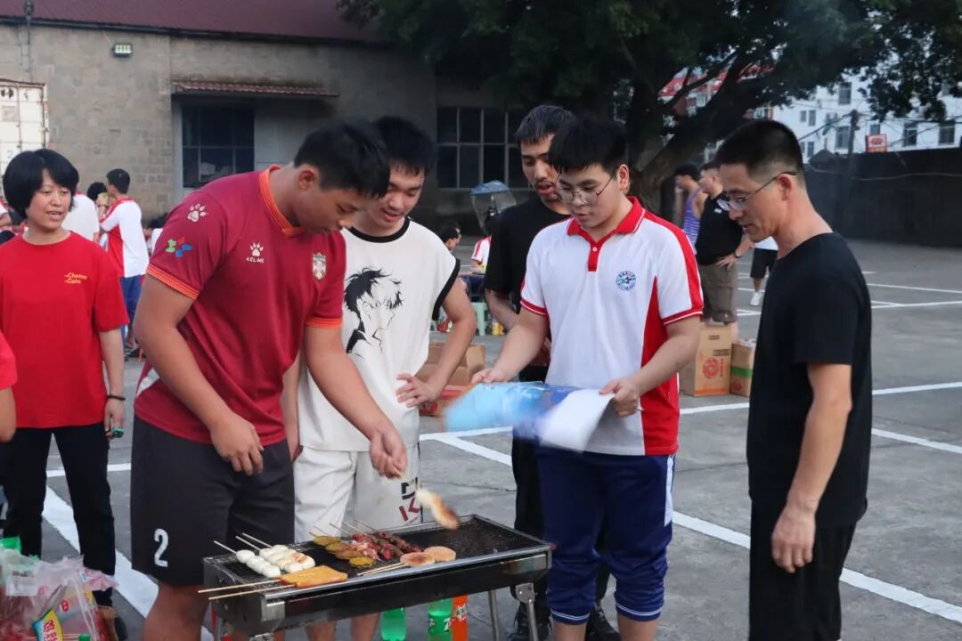 与此同时,露天烧烤区也同步升温,师生围炉而聚,炭火映着笑脸,肉串与蔬菜在铁网上滋滋作响,香气裹挟着欢声笑语升腾。大家边烤边聊,分享着亲手调制的酱料,品尝着焦香四溢的美食。月光之下,升腾的不仅是烟火气,更是浓浓的团圆暖意。