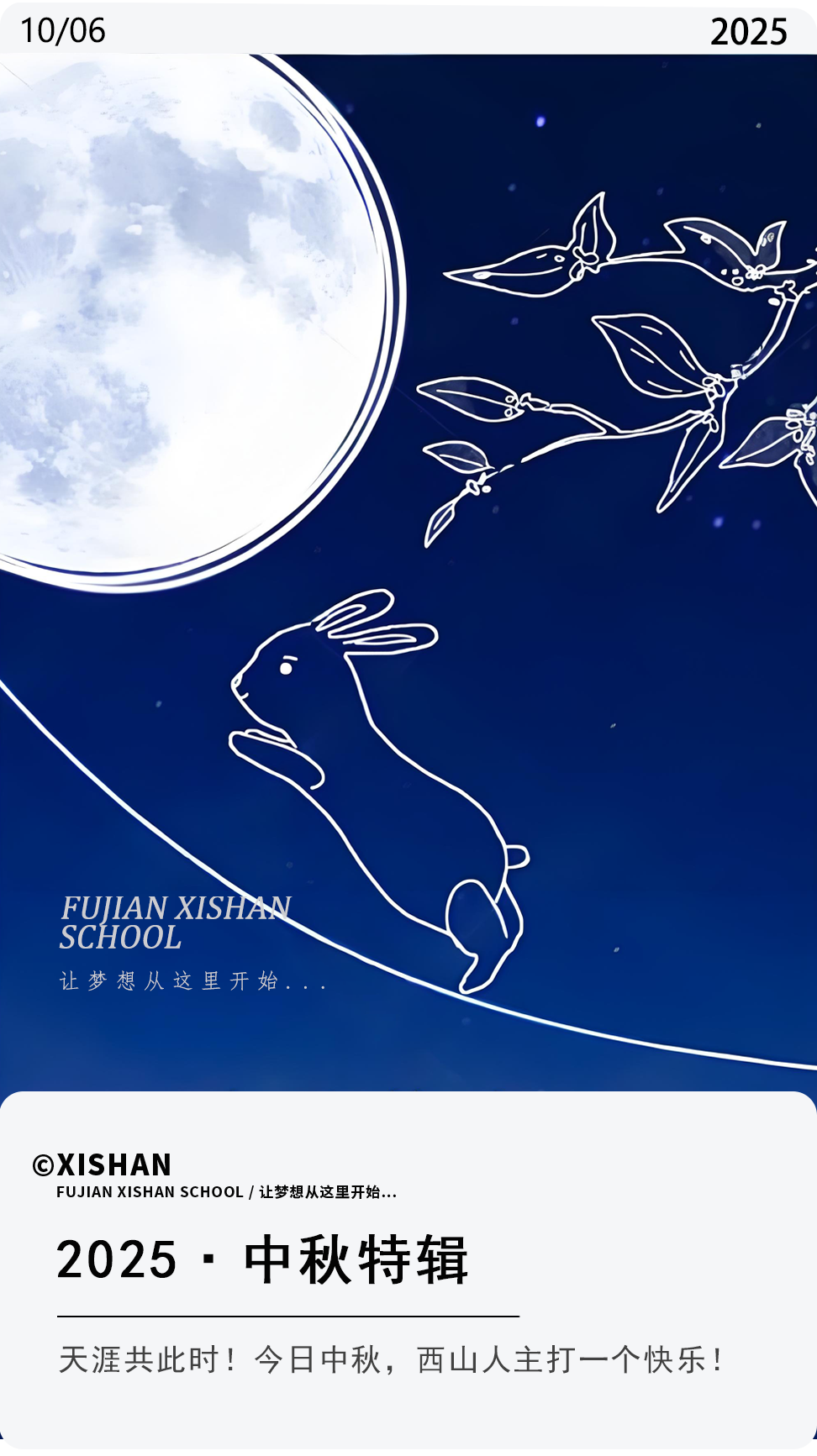 愿月光所至,所有人中秋团圆、阖家平安,万事胜意、皆是圆满!愿西山学校的每一份美好,都能在时光的沉淀中愈发醇厚,陪伴师生们度过更多温馨难忘的岁月!