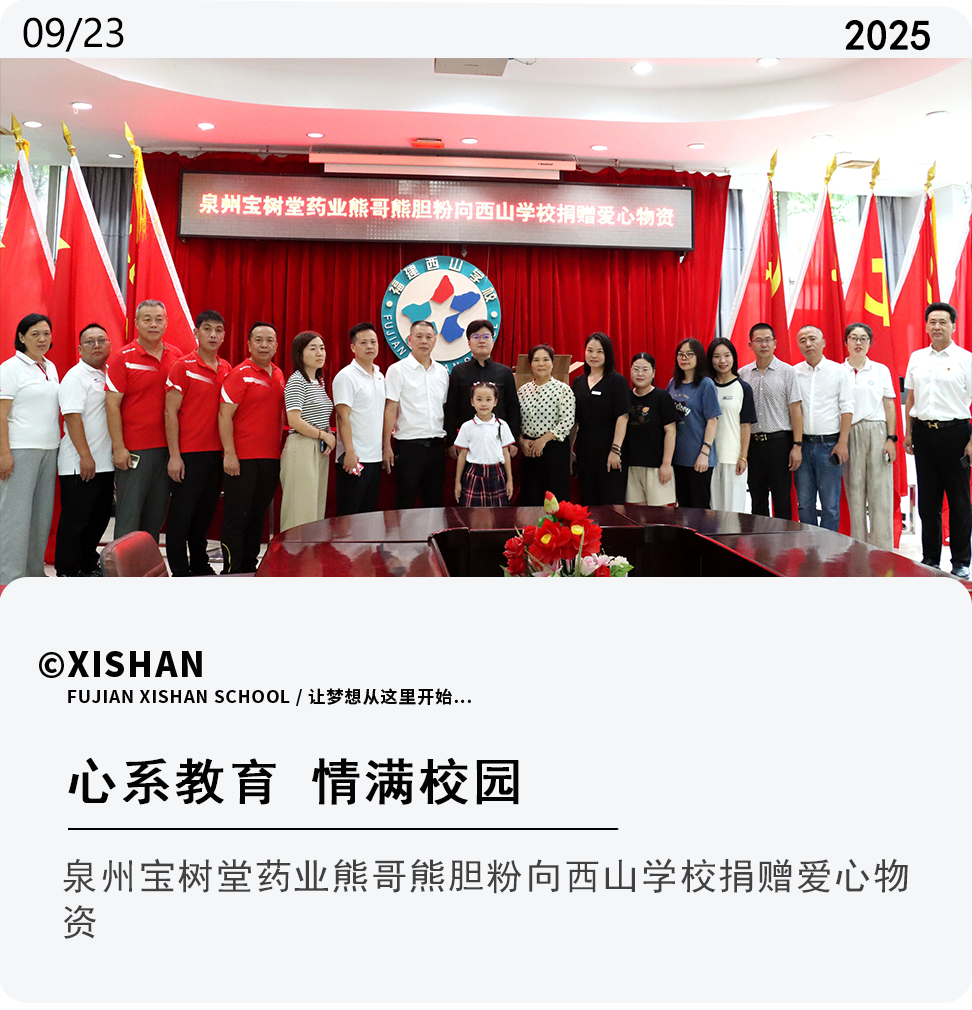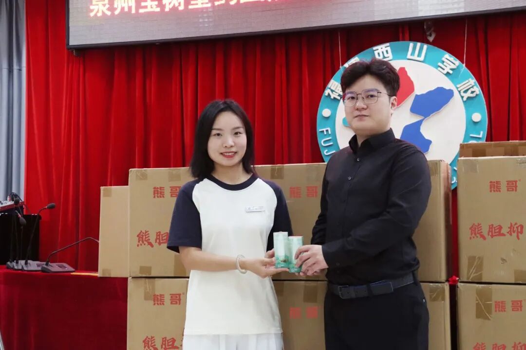 9月23日下午,泉州宝树堂药业熊哥熊胆粉爱心物资捐赠仪式在西山学校科技楼第一会议室温情举行。西山学校工会主席田舒心、办公室副主任丁新等校方代表出席了捐赠仪式。