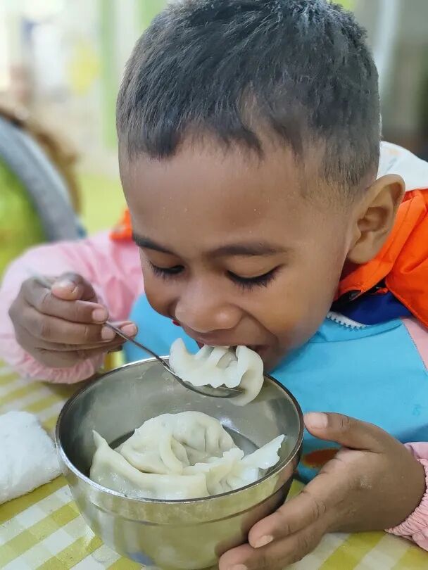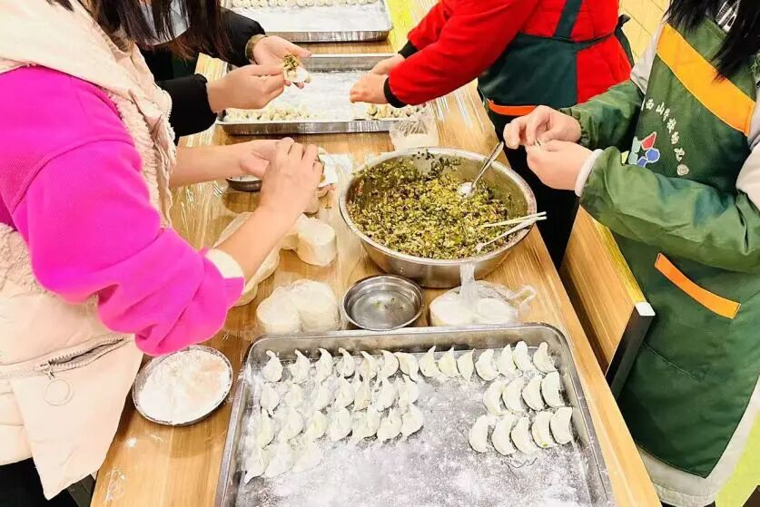 孩子们用稚嫩的小手,团出他们心中甜甜的冬至汤圆;老师们则是以娴熟的手法包好了一个个饱含着满满冬日祝愿的饺子。