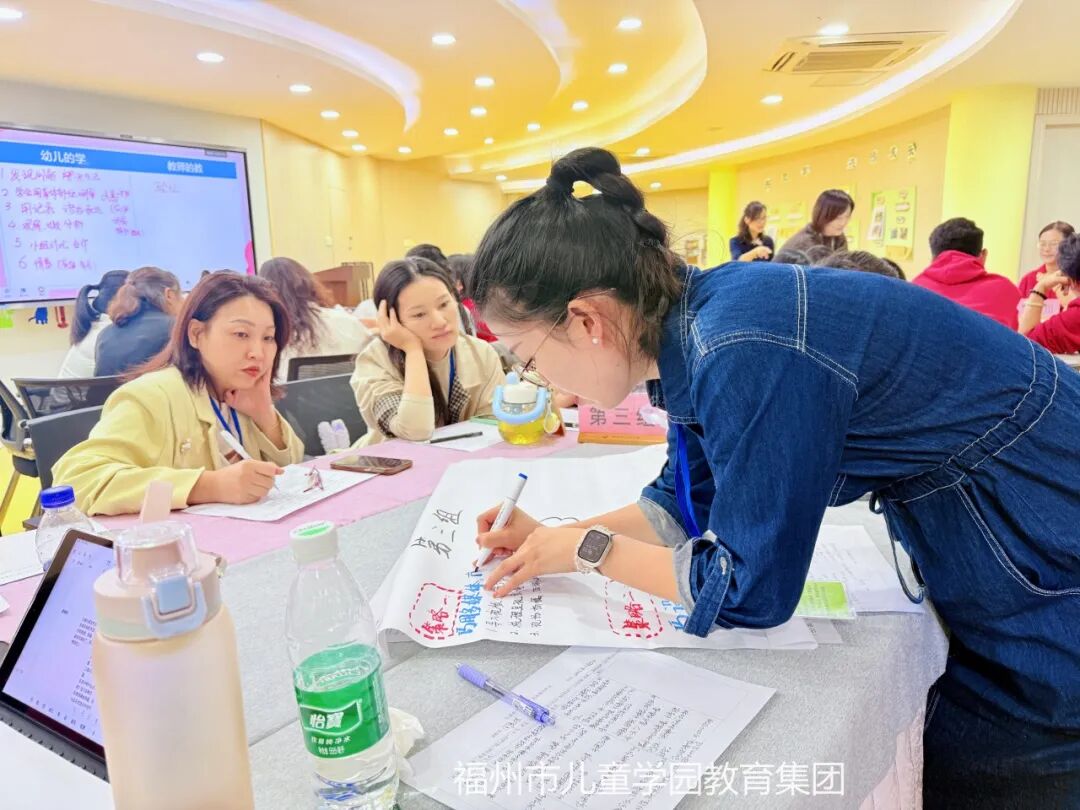 林伟锋副园长以综合活动《我们的游戏币》为例,与学员们一同观察解读幼儿游戏行为,探索有效支持策略。在研讨、碰撞中进一步厘清游戏中“幼儿的学”与“教师的教”的辩证关系,明确在尊重幼儿自主探索的基础上,围绕核心经验实施有目的的引导,使集中教学成为推动幼儿深度游戏的有效路径。