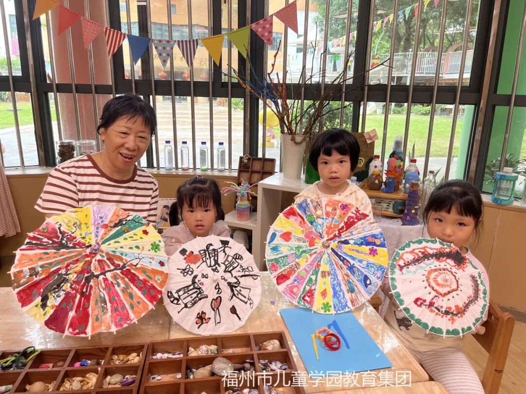“奶奶老师”还给我们介绍油纸伞,带着我们给油纸伞穿上五彩的新衣。哇,“奶奶老师”的本领可真多呀。