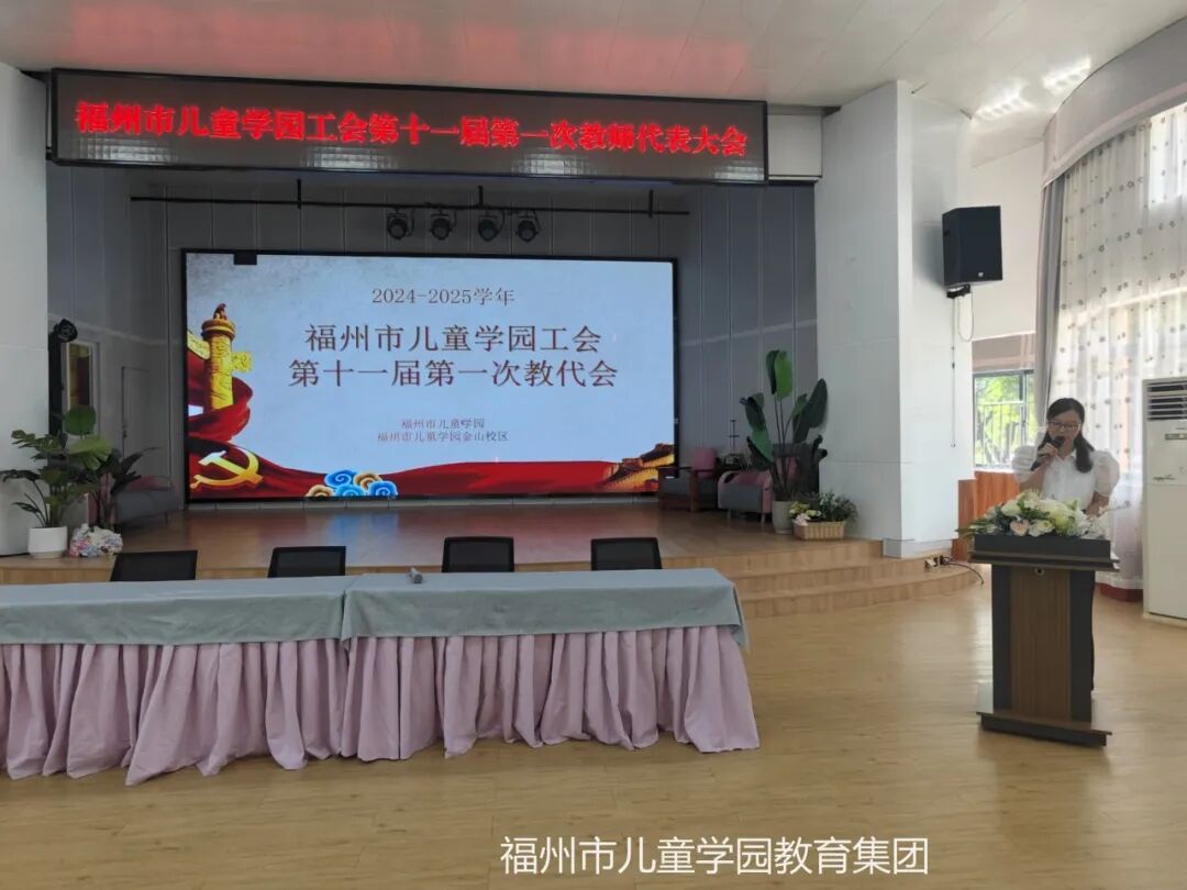 为全面贯彻党的教育方针,落实党的二十大精神,加强幼儿园民主管理,充分发挥教职工在园所发展中的主人翁作用,保障教师的知情权、参与权和监督权,福州市儿童学园于2025年7月3日隆重召开第十一届第一次教师代表大会。