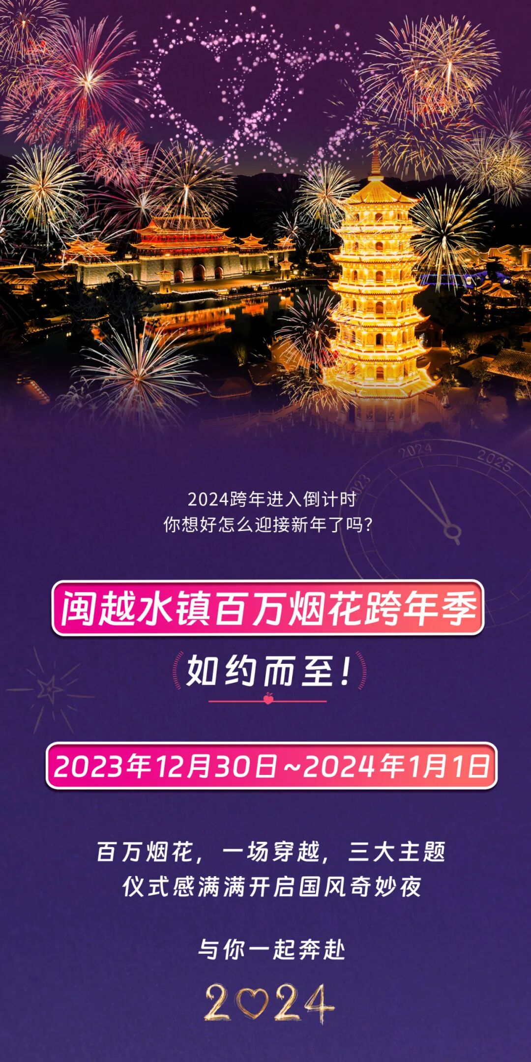 14、12月30日~1月1日闽越水镇百万爱心烟花大秀,具体燃放时间以景区现场为准。