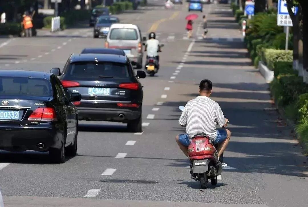 与前方电动车至少要保持车速1/10的安全距离,比如40码的速度至少4米以上的距离,这样你才有反应时间去处理紧急情况。