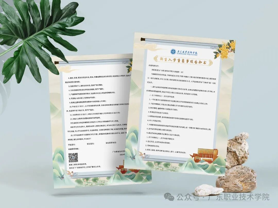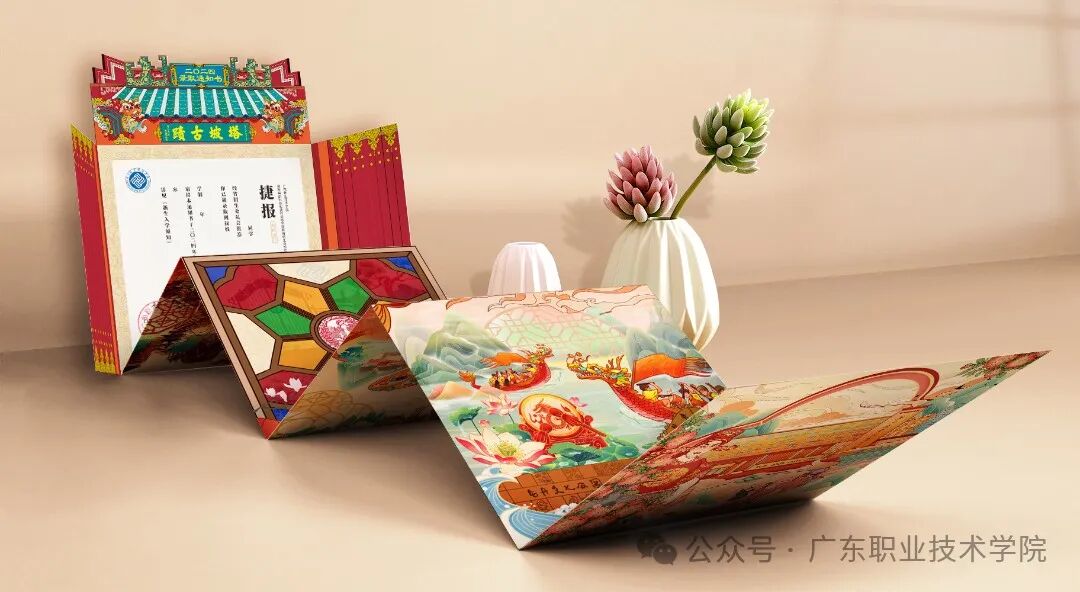 2024年录取通知书继续走心风格,秉持“求真 强技 尚新 敦行”之训,集萃岭南非遗技艺,融汇学校特色人文,力求传承中创新,创新中发展,彰显匠心之美,展示精益之道。通知书采用抽拉式开启,趣味十足,寄意深远,学习之路如是,兴趣、探索与发现相随相成。