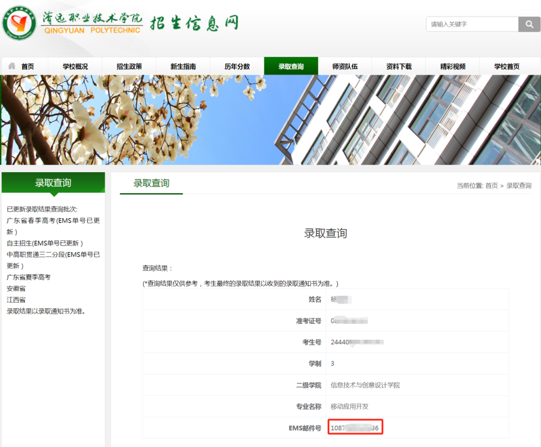 2024级新同学:今年广东省内的录取通知书已通过中国邮政EMS发出,请注意查收!