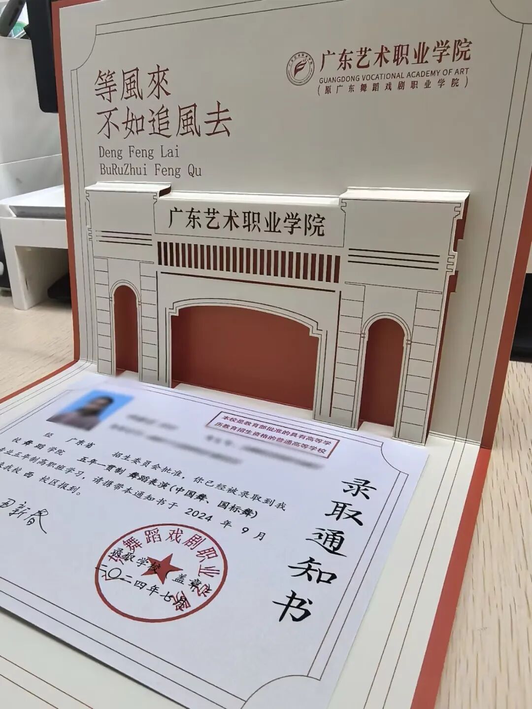 录取通知书是进入大学报到的凭证之一,切记保管好!录取通知书中附带广东艺术职业学院新生须知、缴费须知、学生资助政策、学生基本信息登记表、校园网指南、参军入伍政策等。收到后请仔细阅读新生入学须知,以免报到当天出现不必要的麻烦。