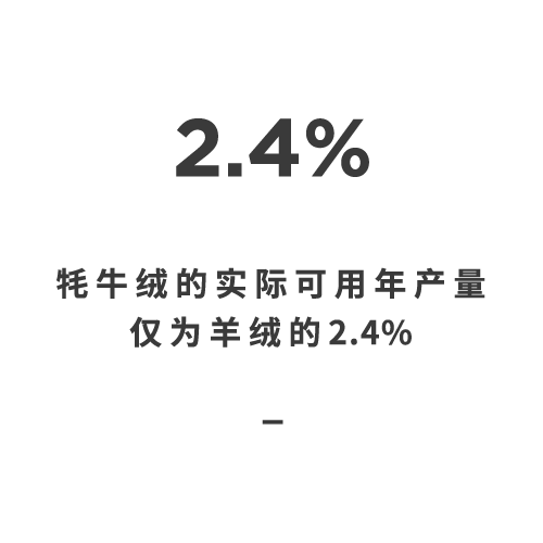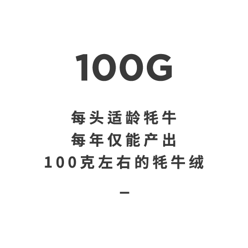 全世界有超过10多亿只绵羊,却只有1600万只牦牛,并不是每只牦牛都能产出牦牛绒。每头牦牛,通过头道抓梳下来的最细腻的底绒,每年仅能产出约100克左右。因此贡献给全球市场的顶级牦牛绒纤维堪称“钻石纤维”或“软黄金”。