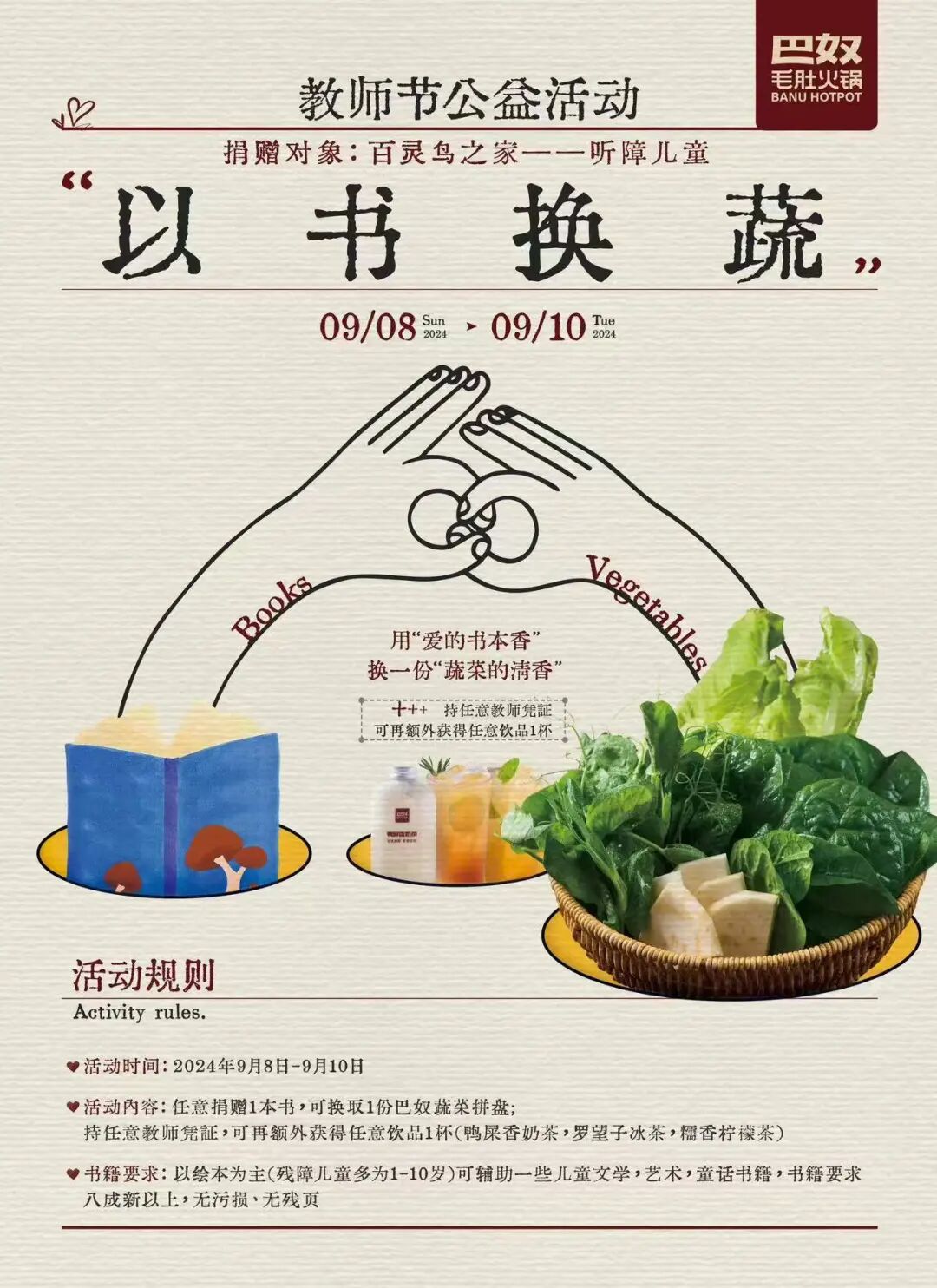 教师节即将到来,巴奴向人民教师致敬。
