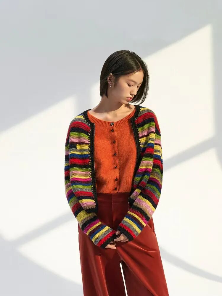 圆领条纹女开衫