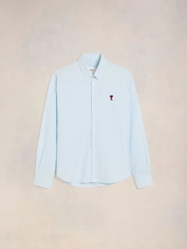 经典款男女同款红色爱心棉质休闲条纹长袖衬衫