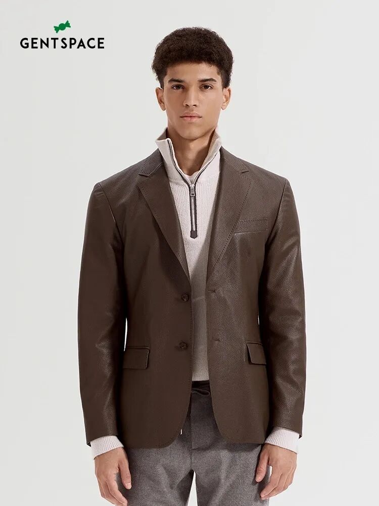 GENTSPACE男士深咖鹿皮革休闲西装外套