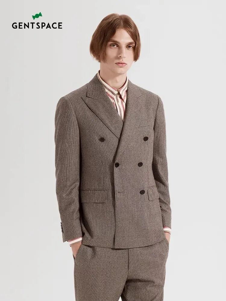 浅咖色绵羊毛双排扣西装