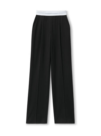 徽标装饰弹力高腰褶裥长裤