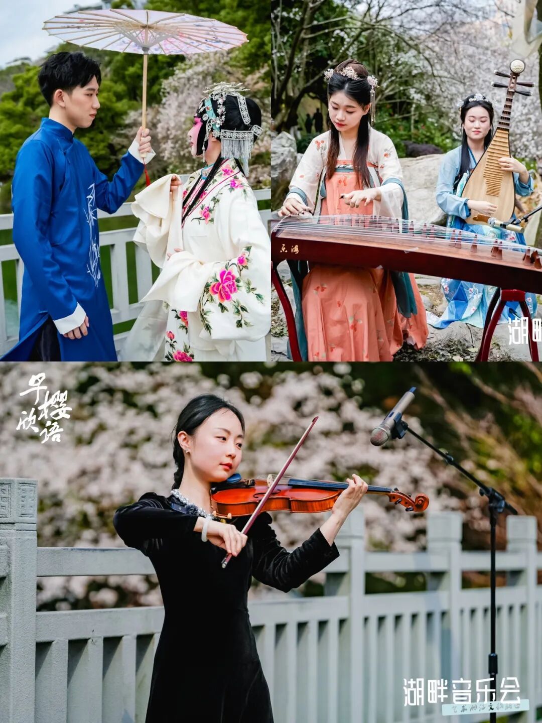 本次湖畔音乐会创新式以主舞台、分舞台形式开展演出,主舞台以交响乐、国潮乐队、民乐等三场风格迥异的演出引爆人流;分舞台则将戏歌、器乐演奏等表演错落有致地镶嵌进公园的山水廊桥画卷中,串珠成锦、雅趣盎然,绘成一幅声色动人的樱景图。