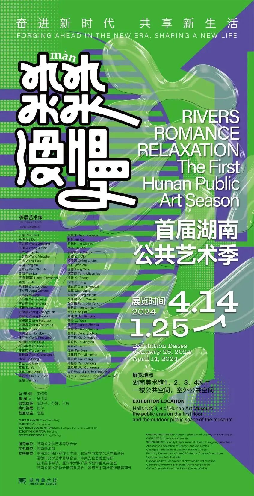 “以水为媒”,打破艺术和生活的边界,湖南美术馆联合多家机构,邀请68位中外艺术家,于2024年伊始推出“㵘màn·漫·慢”首届湖南公共艺术季。