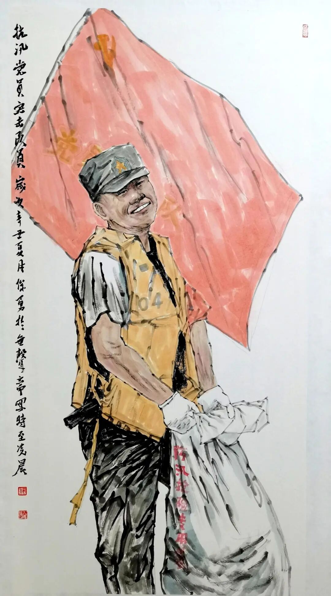 国画《抗汛党员突击队员》