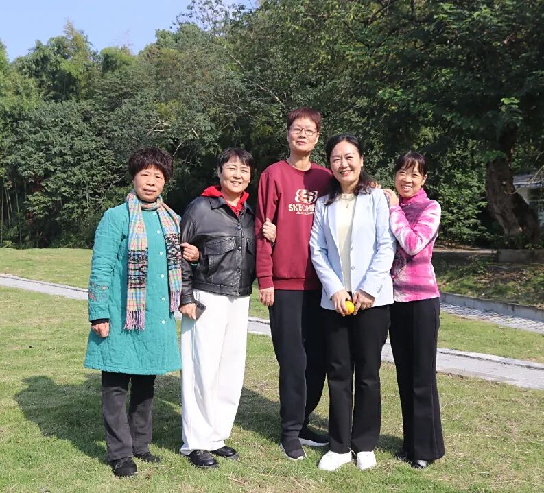 清晨的生态园里,秋风送爽,绿意未消。大家信步林间,在关公阁等景点前驻足交流,感受历史与自然的交融。园中处处是老友重逢的欢愉:他们或并肩漫步,或合影留念,或围坐畅谈,分享退休生活的趣事与心得。悠扬的歌声不时响起,老师们演唱经典曲目,以歌寄情,唤起一代人的共同记忆。现场气氛温馨而融洽。
