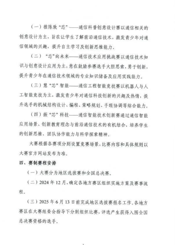 大赛设推陈致“芯”——通信科普创意设计赛、“芯”向未来——通信技术应用挑战赛、慧“芯”智能——通信工程智能竞技赛、振“芯”科技——通信智能技术创新赛四个赛项。