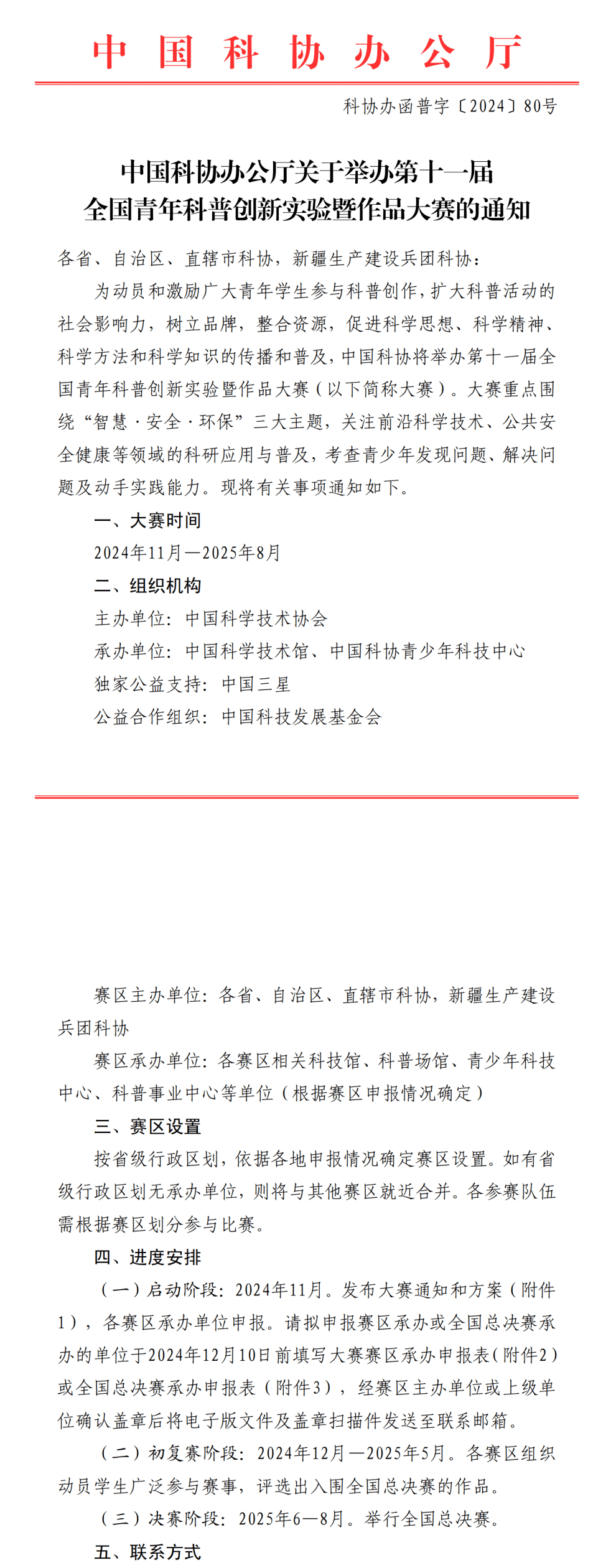 赛区主办单位:各省、自治区、直辖市科协,新疆生产建设兵团科协