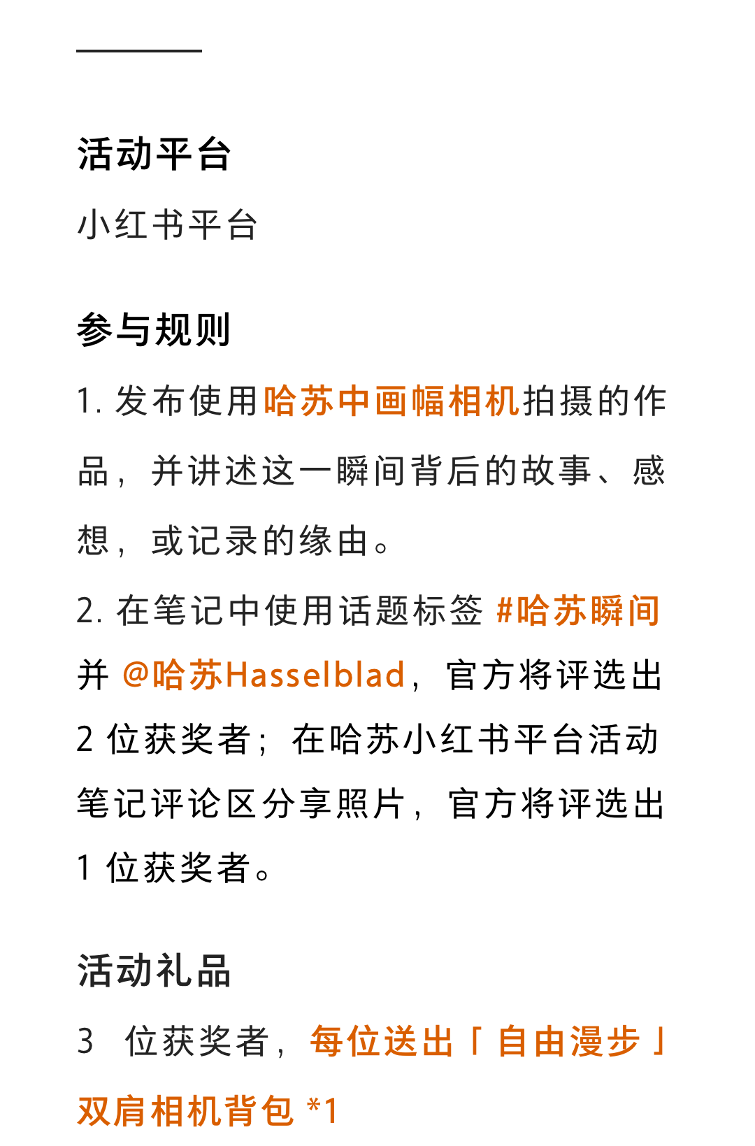 摘要:分享「哈苏瞬间」,赢「自由漫步」双肩相机背包。