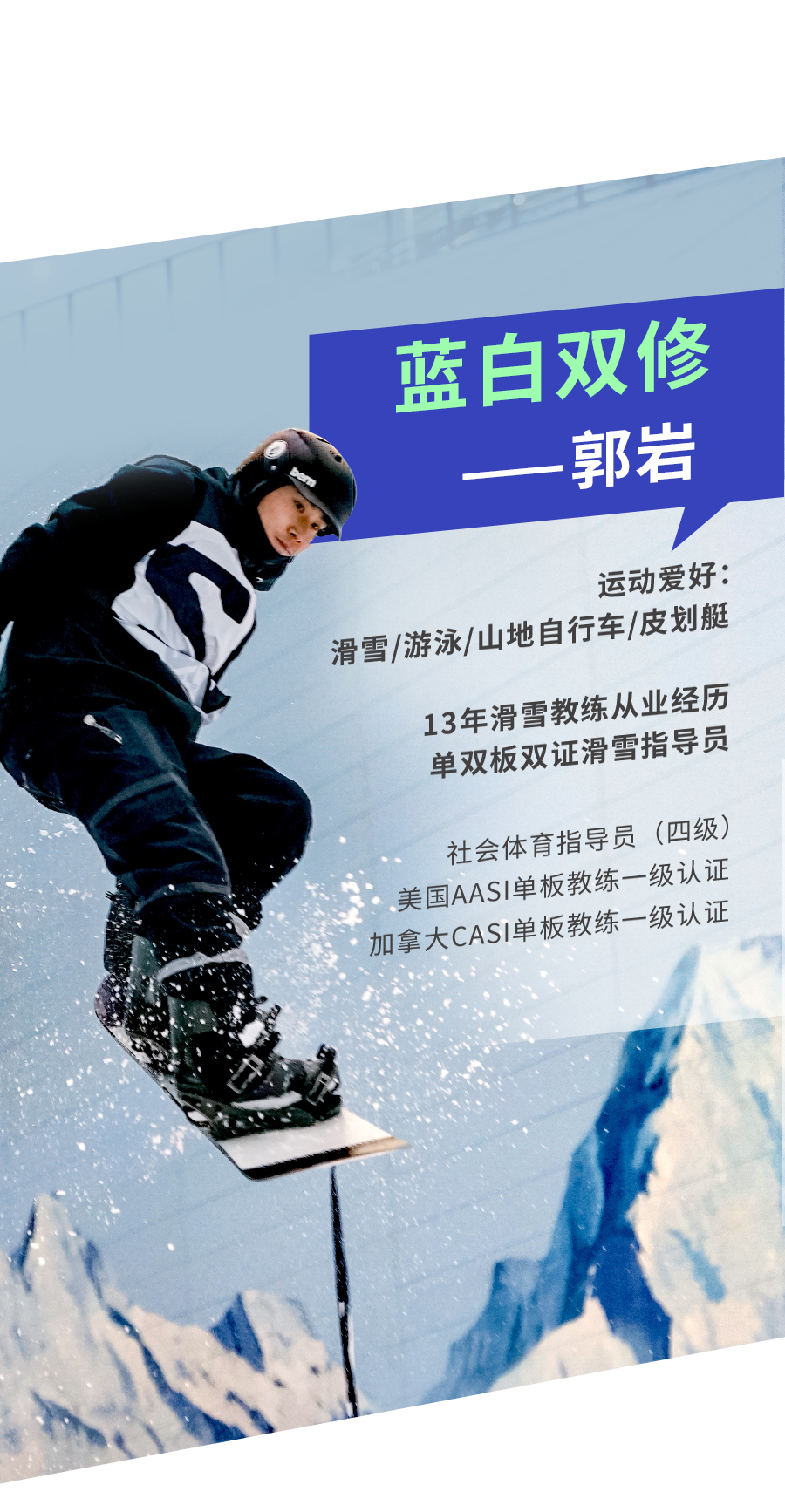 ⑥绳索。干绳经过防水处理,能防止水分渗入内芯,在冰雪环境下不会因结冰而变硬,是攀冰运动的首选。一般来说,半绳或对绳是两根较细的绳子,同时使用能减少绳索拖拽,提供了更复杂的保护方式,适合长路线或冰岩混合路线。