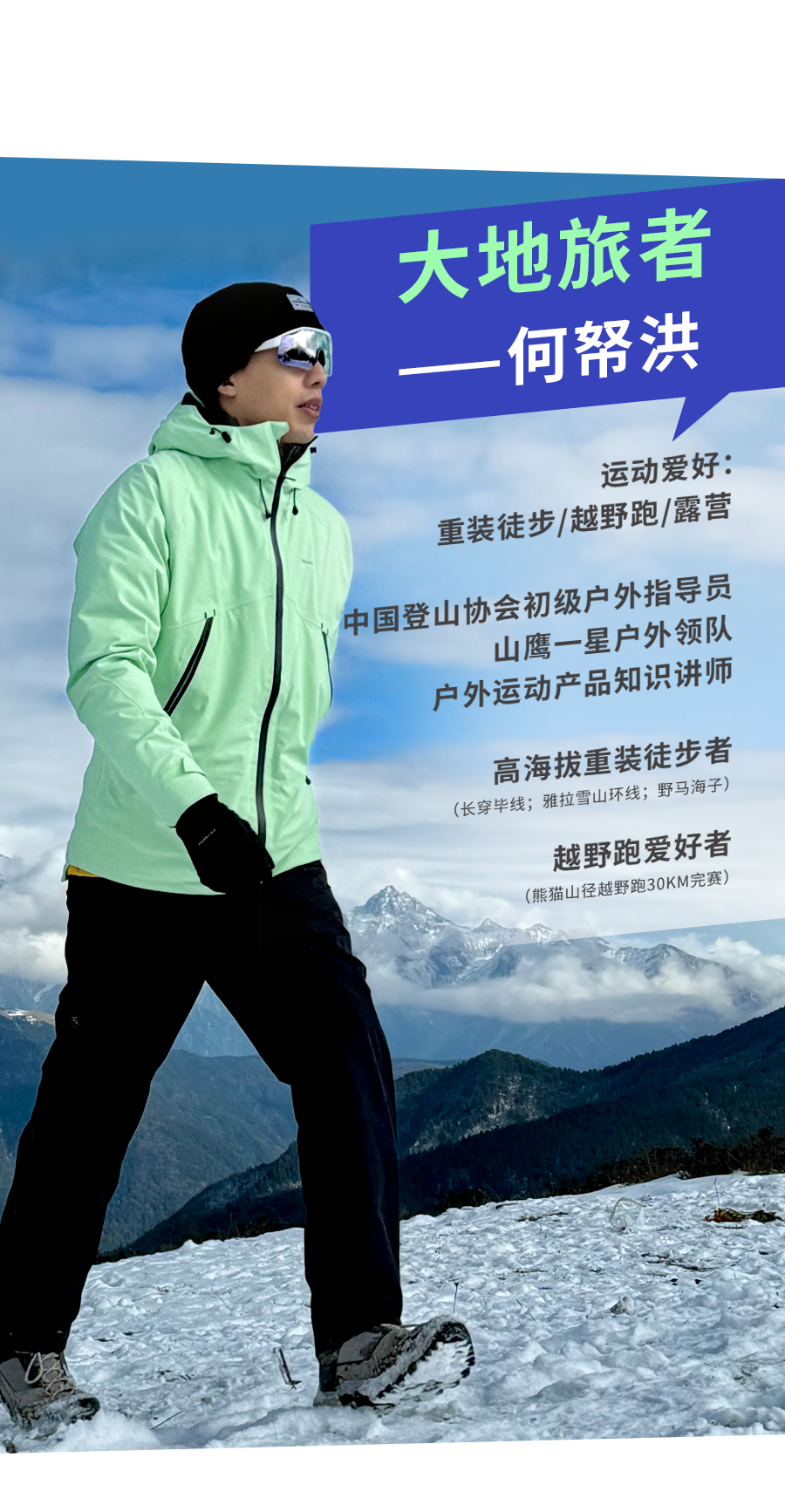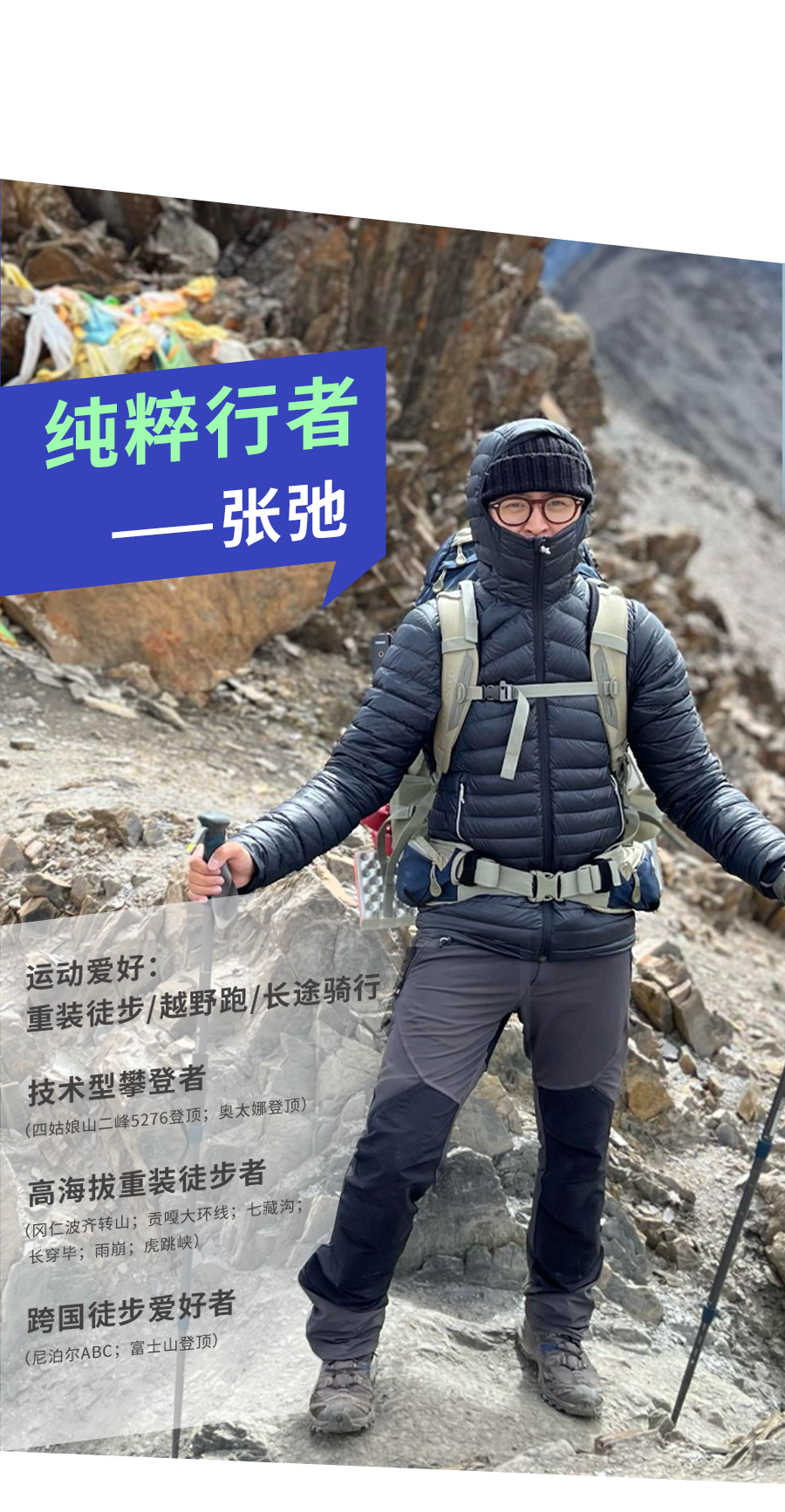 ④冰钩。像一个大钉子,用锤子敲入冰面的裂缝或薄弱处。在无法放置冰锥的地方作为临时保护点,比如薄冰、冰岩混合地带。