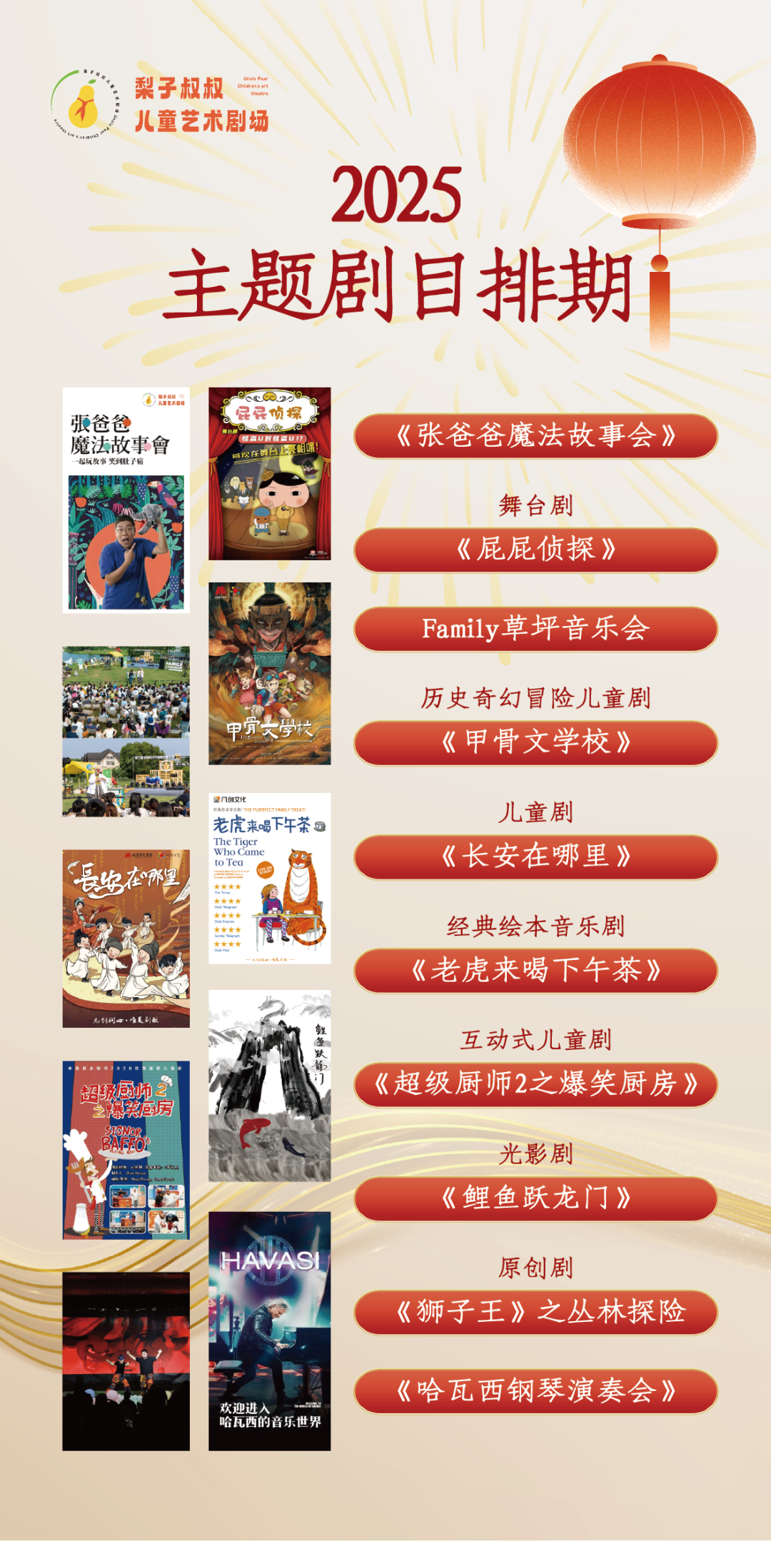 回顾过去的一年,梨子叔叔儿童剧场在您的陪伴下,为小朋友们带来了无数美好的回忆。