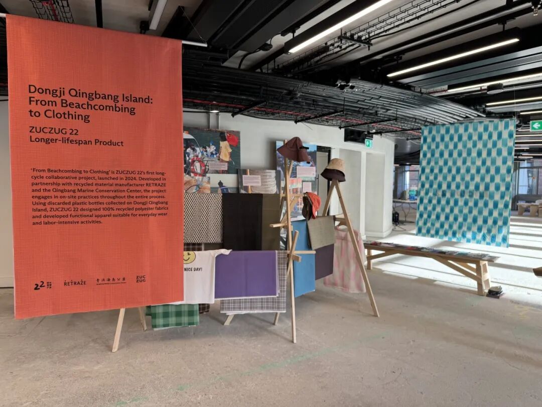 今年9月,ZUCZUG 22携「先赶海,再制衣」可持续项目登陆伦敦设计周MATERIAL MATTERS展会,将海岛公益伙伴的故事,以及与合作方共同推动的净滩行动成果,转化为一系列再生面料产品,呈现于聚焦可持续议题的国际观众面前。