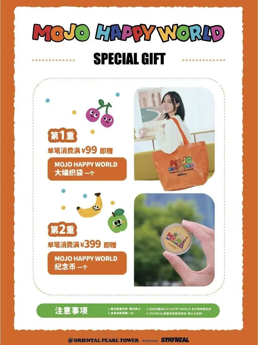 🎁凡购买MOJO HAPPY WORLD-TASTY BUFFET欢乐餐厅食光区自助餐,即可获得『好食光限定伴手礼』(用餐时领取,每位一份),内含:MOJO HAPPY WORLD限定吧唧x1、限定透卡x1、木质纪念明信片x1、环保随行杯x1、透明袋 x1。