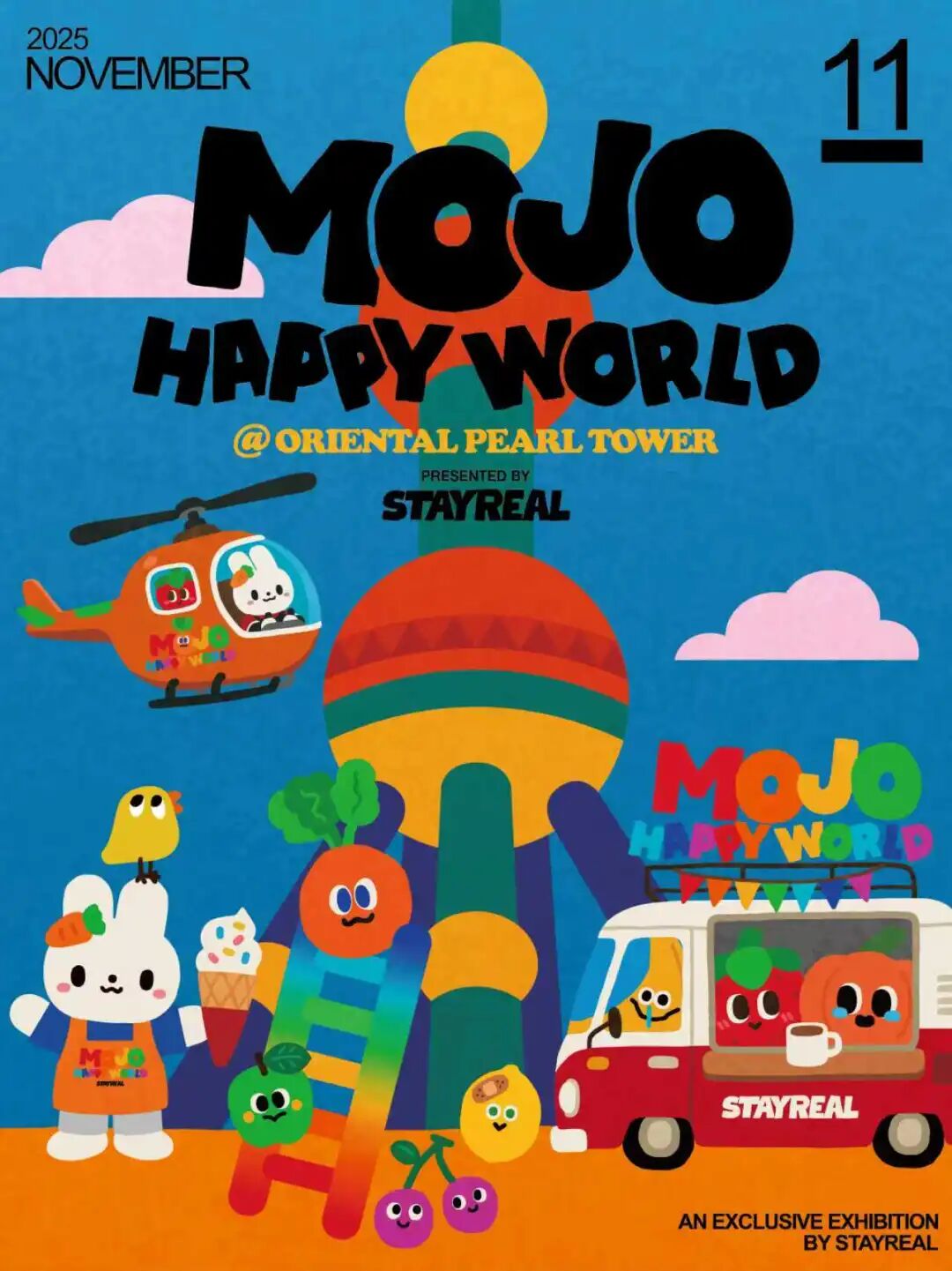 11月16日,STAYREAL正式启动全新品牌战略项目——「MOJO HAPPY WORLD」。作为构建IP多元生态版图的关键一步,该计划旨在以IP为核心,打造更具温度与共创属性的体验场景。「MOJO HAPPY WORLD」以“让快乐不止是情绪,更成为力量”为出发点,借助MOJO FAMILY的想象力与陪伴力,构建能产生精神共鸣的多元空间。「MOJO HAPPY WORLD」可以是餐厅、公园、展览、POP-UP STORE、生活空间、甚至整座乐园——是一个真正以“快乐”为砖瓦、“梦想”为蓝图的实体场域。希望每个独特的灵魂都能在MOJO HAPPY WORLD 找到自己的色彩,它是IP、潮流与情绪的交汇点,亦是一个让梦想有回响、让童心被守护的永恒坐标。