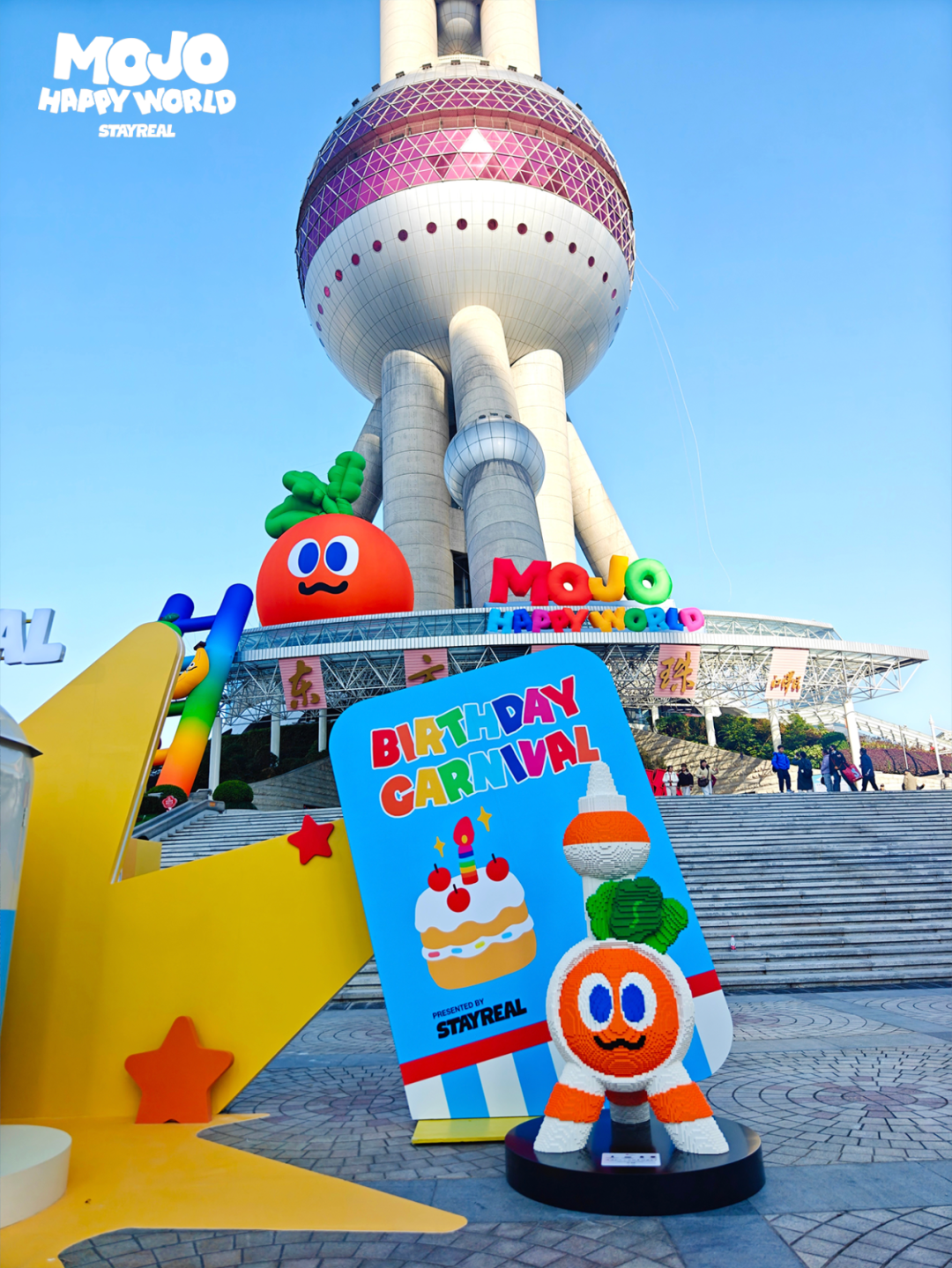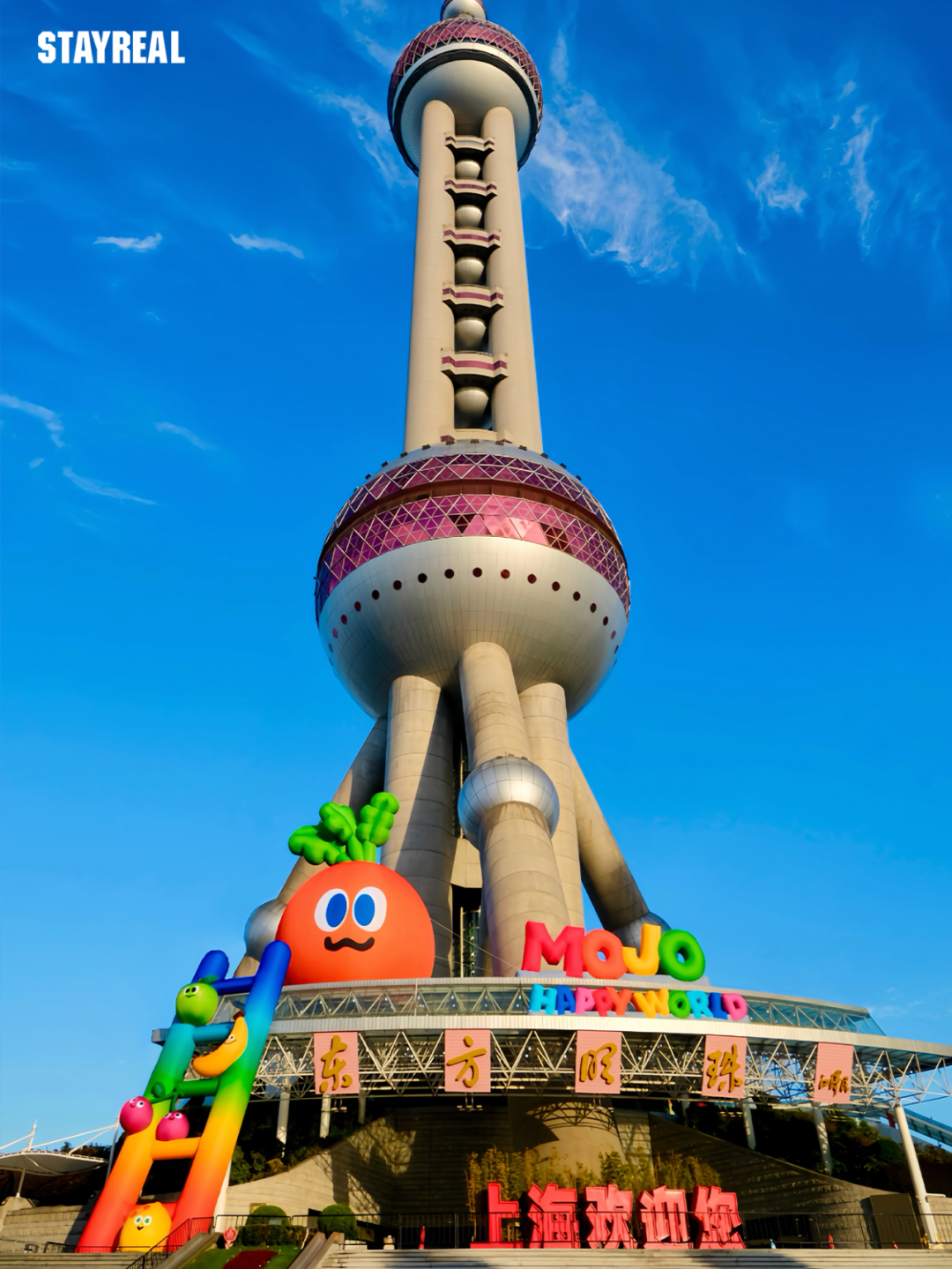 时隔一年,STAYREAL再次携旗下IP「MOJO CARROT)」及MOJO FAMILY成员重返梦想起点——世界级地标东方明珠塔,从2024年的《天空卜览 SKY MOJO EXPO》装置艺术到2025年的全新企划「MOJO HAPPY WORLD」为城市文旅注入创新活力。此次升级不仅延续了IP与城市地标的深度融合,更尝试带领大家通过不同的视角了解上海,以潮流IP赋能城市空间价值焕新,打造文旅融合的创新范式。