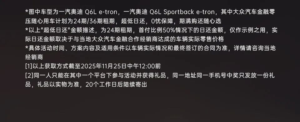 摘要:超低月还,0忧保障!一汽奥迪 Q6L e-tron家族豪华电动,触手可及