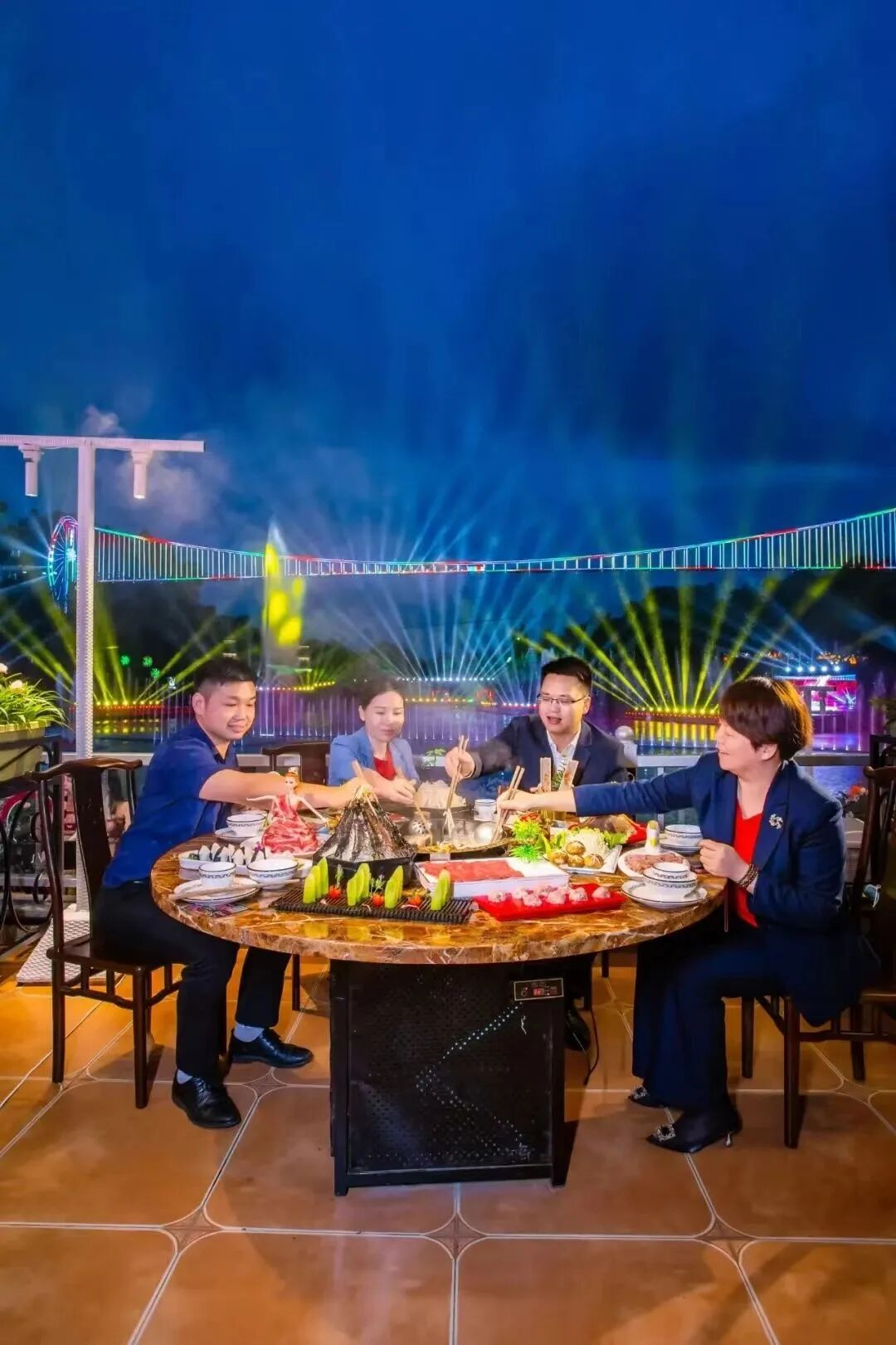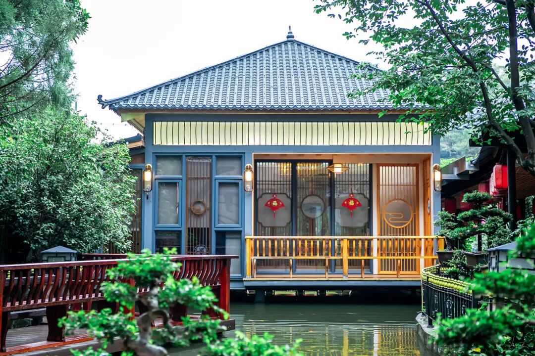 隐贤山庄限定《蝶影》餐厅以用餐体验取胜。与隐贤湖仅一径相邻,呈现开放式空间,夜幕降临将270°尽享《蝶影》烟花灯光秀,震撼的夜幕尽收眼底,让你尽兴而归!