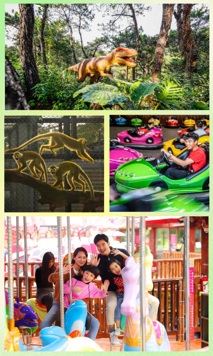 门票内容:入园门票+《蝶影》水舞灯光秀+剧场表演+动物园+恐龙谷+嘻哈乐园+碰碰车+自控飞机+军事乐园+摇头飞椅+幽灵城堡+空中飞舞+滑行龙+恐龙飞车+海洋转马+儿童爬山车+环游世界(14个项目,每个项目限玩1次)