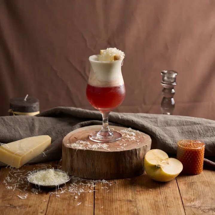 Cranberry and mango and blackcurrant flavored syrup create a sweet and sour flavor.A creamy milk foam topping with caramel aroma.Cheese shreds add a touch of flavor.A sip of fruity goodness brings a pleasant buzz and winter romance to your heart.