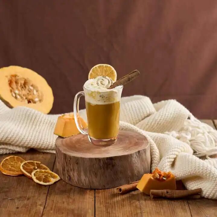 The rich aroma of black tea is infused with the fragrance of pumpkin.The honey is sweet but not cloying.Topped with smooth cream, it's adorably "dirty”.A finishing touch of cinnamon and dried orange slices.Experience the sweetness of the tea blended with the pumpkin
