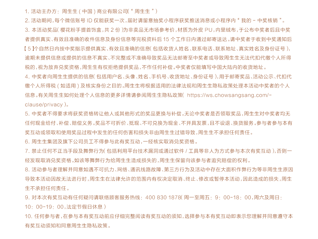 文章内容来源于公众号:周生生网上珠宝店,点此可查看原文,内容版权归相关企业所有,本网站仅供交流学习。若涉及版权问题或存在侵权情况,请及时与我们联系,我们将第一时间进行删除处理。
