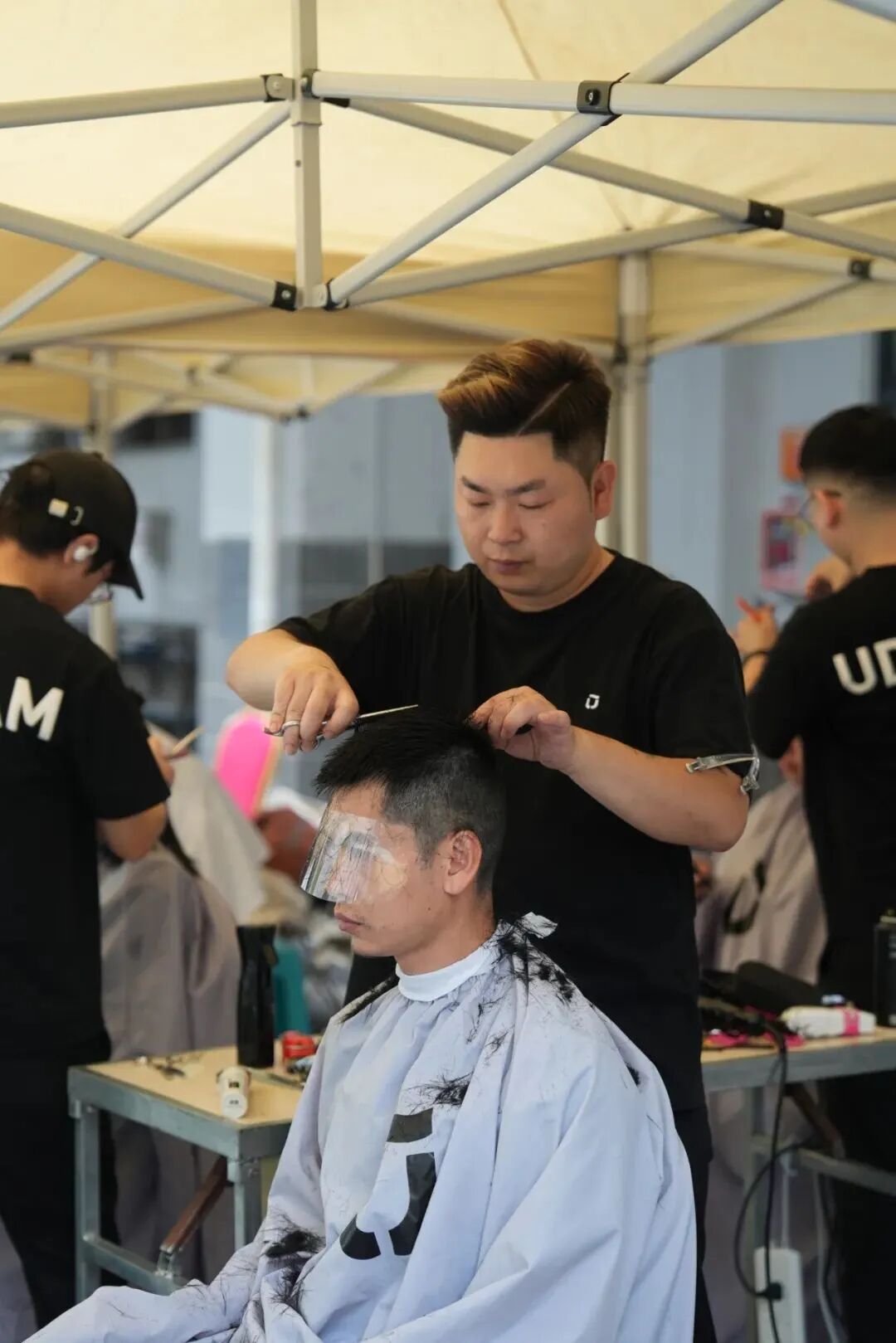 本次活动特邀了4位优剪知名发型师登场,他们面带微笑,帅气上台。面对主持人的热情提问,发型师侃侃而谈,准确迎合蓝领员工的发型需求,真诚迎接每一位前来剪发的员工。