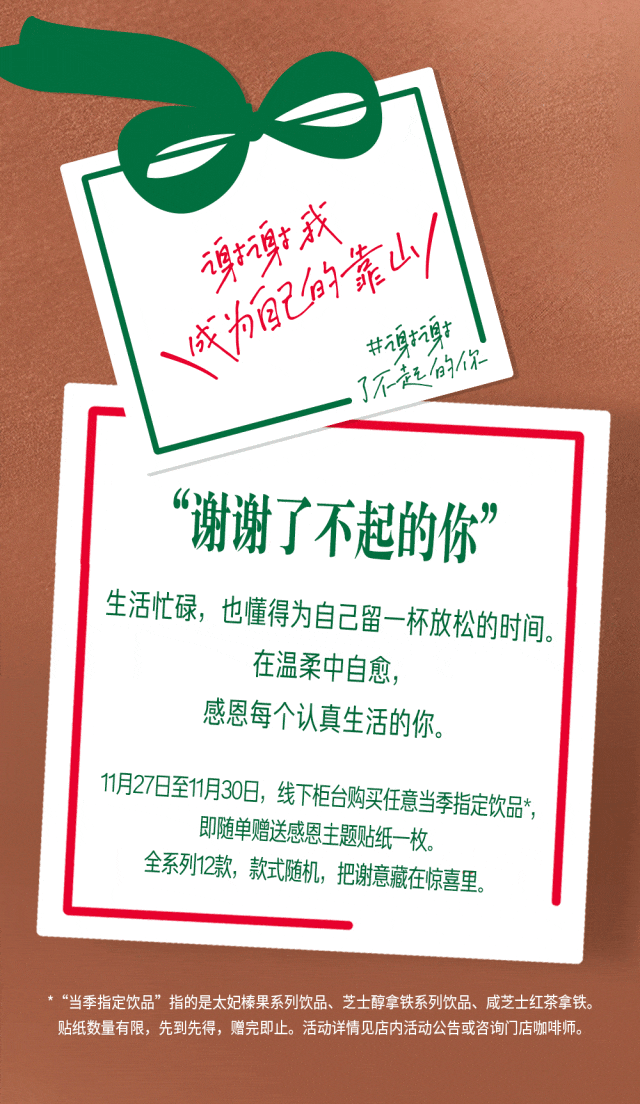 文章内容来源于公众号:星巴克中国,点此可查看原文,内容版权归相关企业所有,本网站仅供交流学习。若涉及版权问题或存在侵权情况,请及时与我们联系,我们将第一时间进行删除处理。