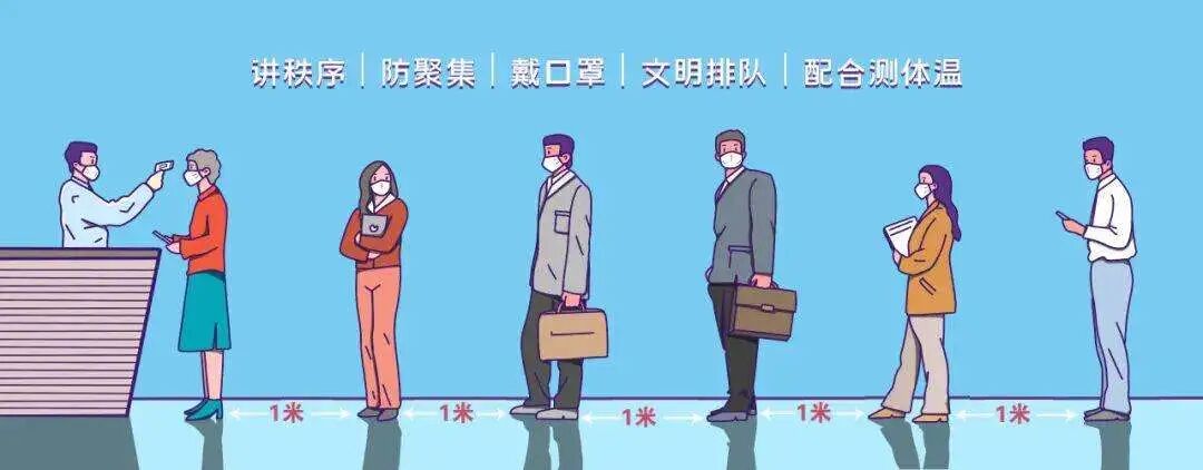 1米线:排队、付款、交谈、运动、游玩……,保持1米以上安全社交距离