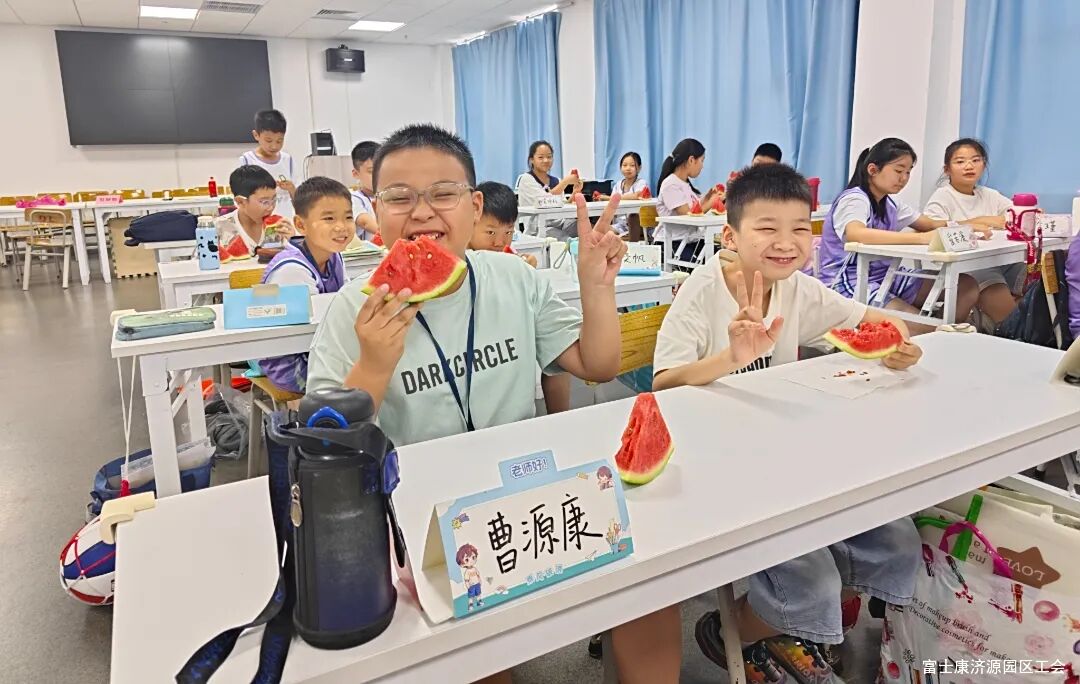 8月15日,富联科技活动中心一楼大厅热闹非凡,2025年员工子女暑期托管班在这里温馨结业。济源园区工会赵胜军主席、制造管理中心靳玉锋资深专理等与240余名员工子女及家属参加仪式。