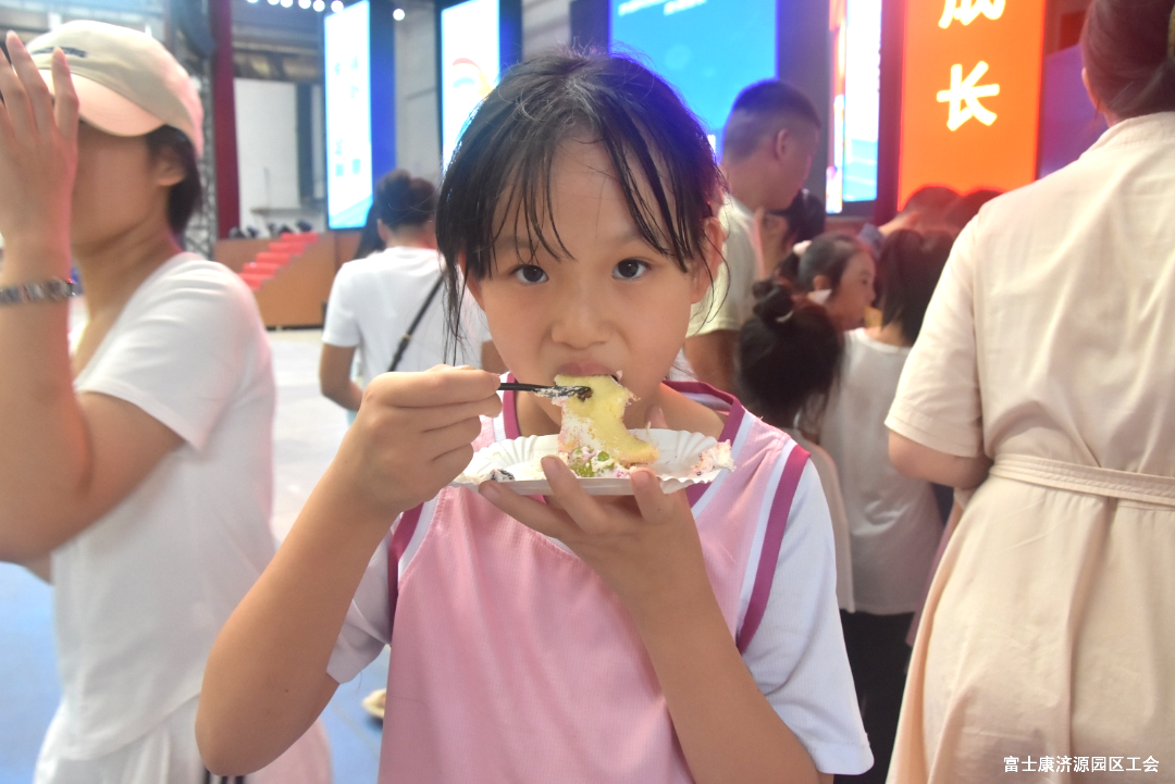 活动现场还特别设置了琳琅满目的美食区:香醇的牛奶、精致的蛋糕、可口的零食……香气四溢。家长与孩子共享美食,分享喜悦